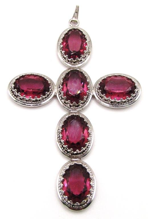 WITH LARGE VIOLET STONES-MEASURES 3 INCHES LONG BY 2 INCHES WIDE-TOTAL 12 DWT