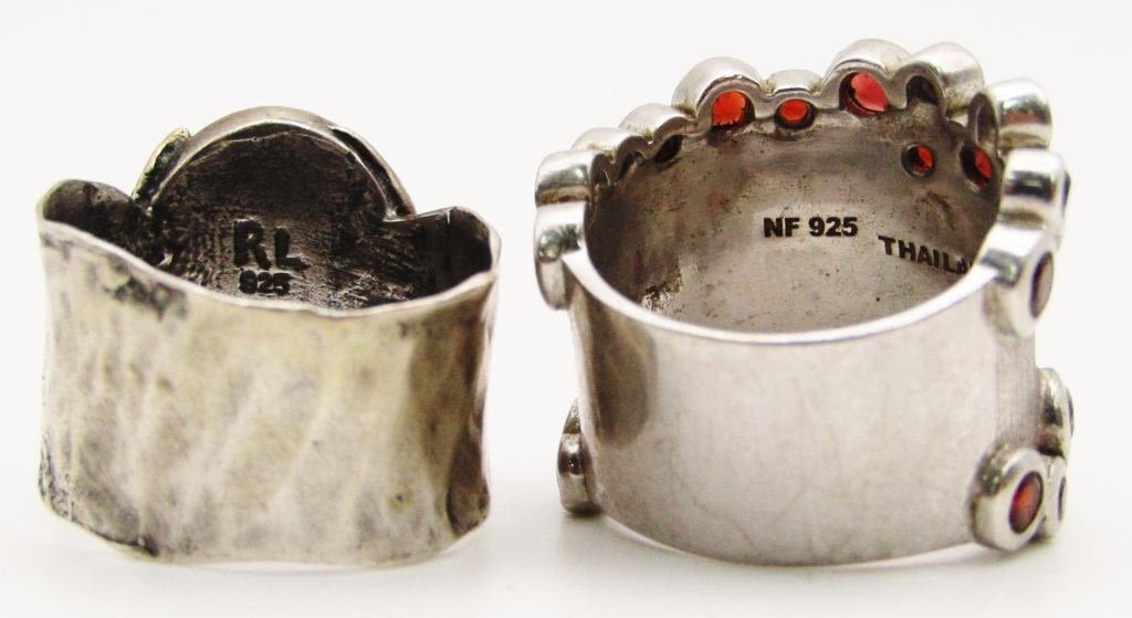 STONE (1)"NF" WITH RUBY RED STONE ACCENTS AROUND BORDER-BOTH RINGS SIZE 8-TOTAL 12 DWT