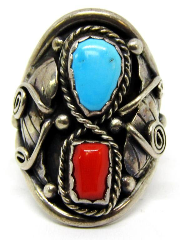 RED CORAL AND SLEEPING BEAUTY STONES-LEAF DESIGN-SIZE 10-TOTAL 9 DWT