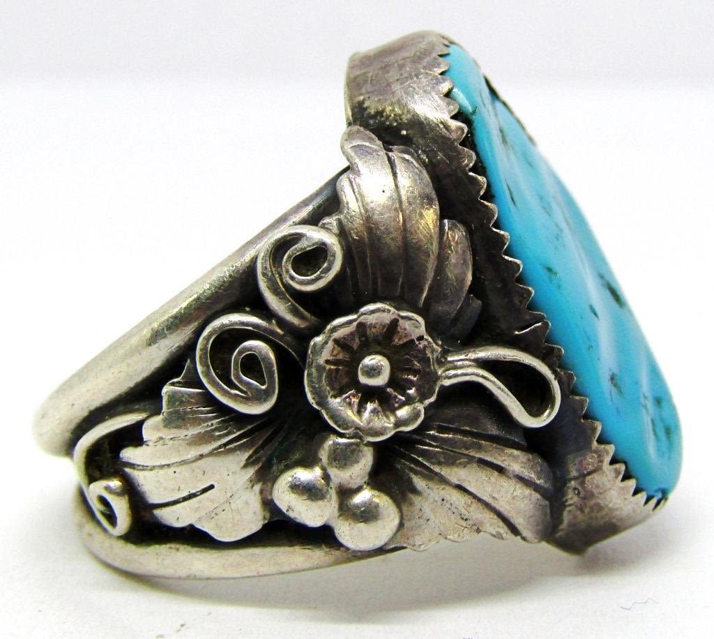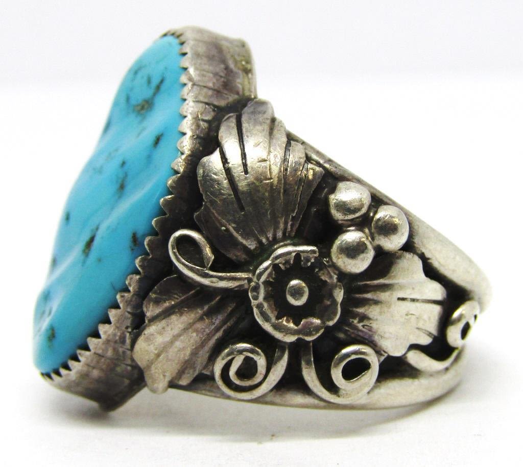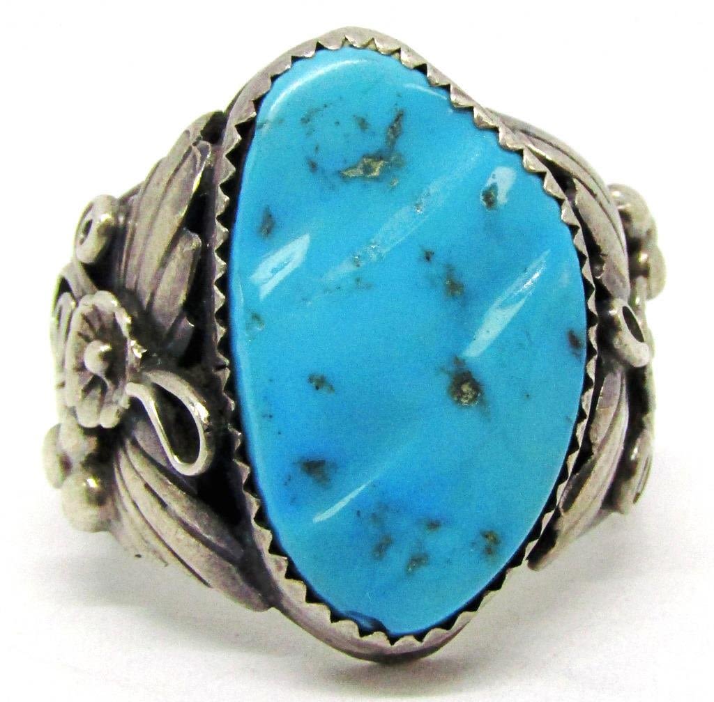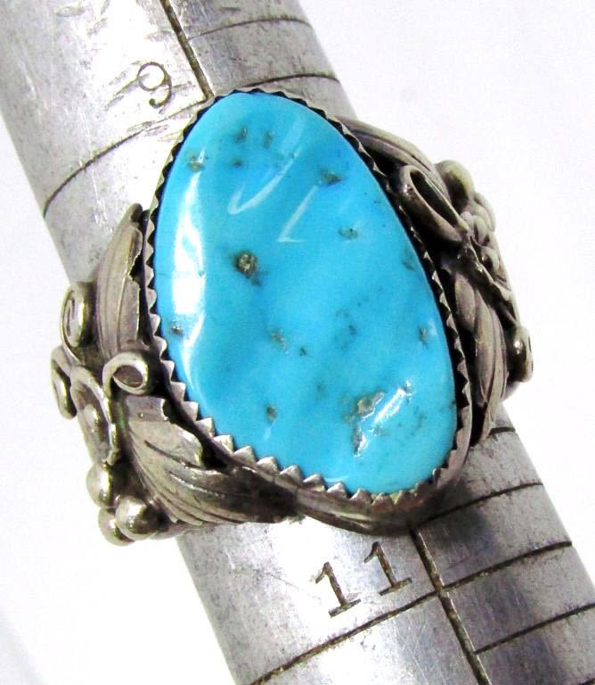 TURQUOISE STONE-LEAF/FLOWER DESIGN ON BAND-RING SIZE 10-TOTAL 10 DWT