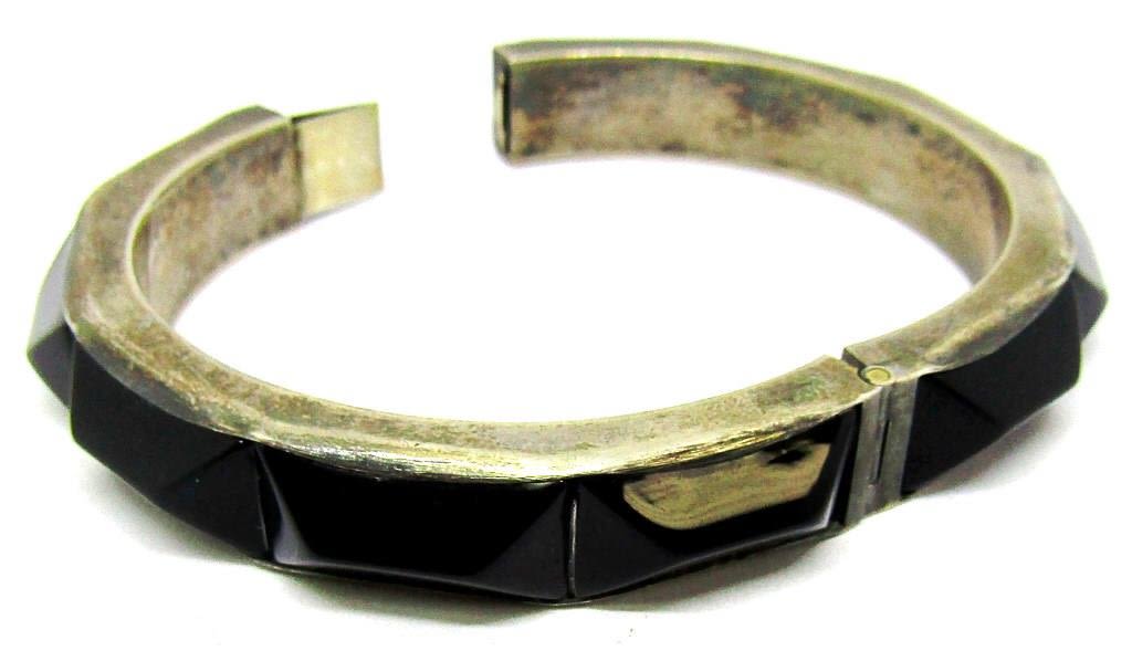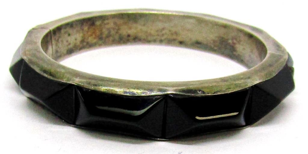 GEOMETRIC BLACK LUCITE DESIGN-MEASURES 9 INCH CIRCUMFRANCE-TOTAL 31 DWT