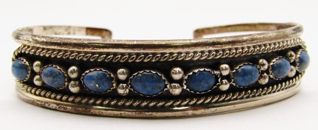 WITH LAPIS? STONES-MEASURES 7.5 INCHES WITH CUFF-TOTAL 11 DWT