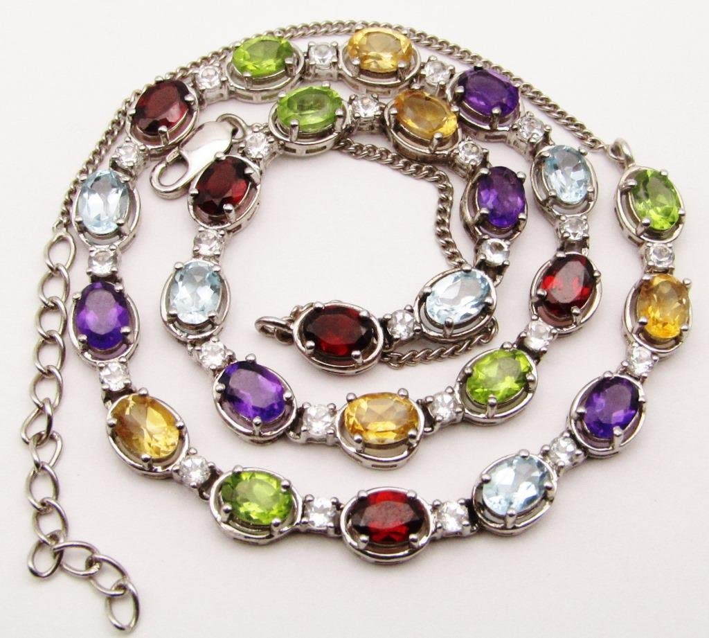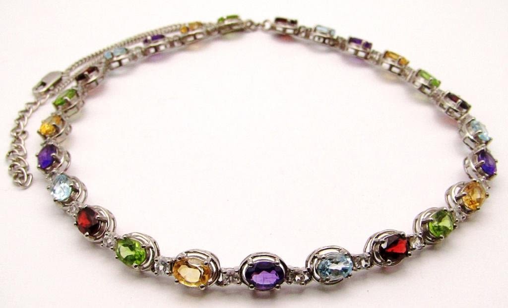 WITH MULTI COLORED STONES-MEASURES 21 INCHES. THIS PIECE IS ABSOLUTELY BEAUTIFUL! TOTAL 16 DWT