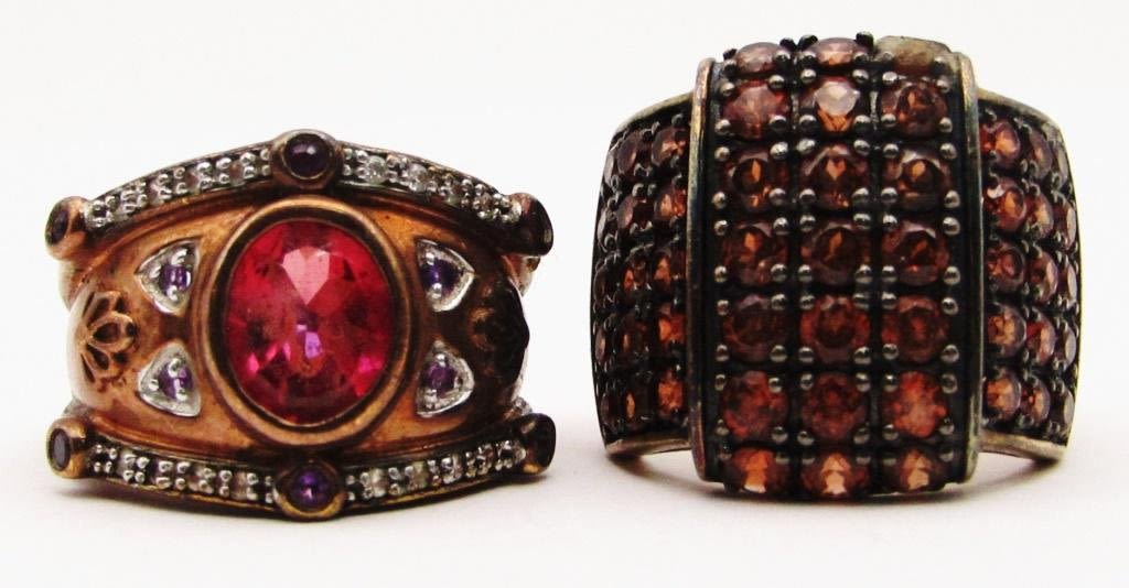(1)MARKED INDIA STS & (1)MARKED THAILAND-BOTH ARE LOADED WITH GORGEOUS STONES! BOTH RINGS SIZE 8-TOTAL 13 DWT
