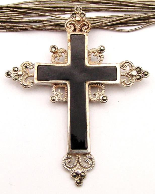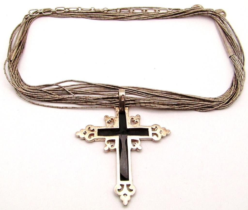 WITH BONUS STERLING CROSS PENDANT WITH BLACK ONYX INLAY-TOTAL 14 DWT