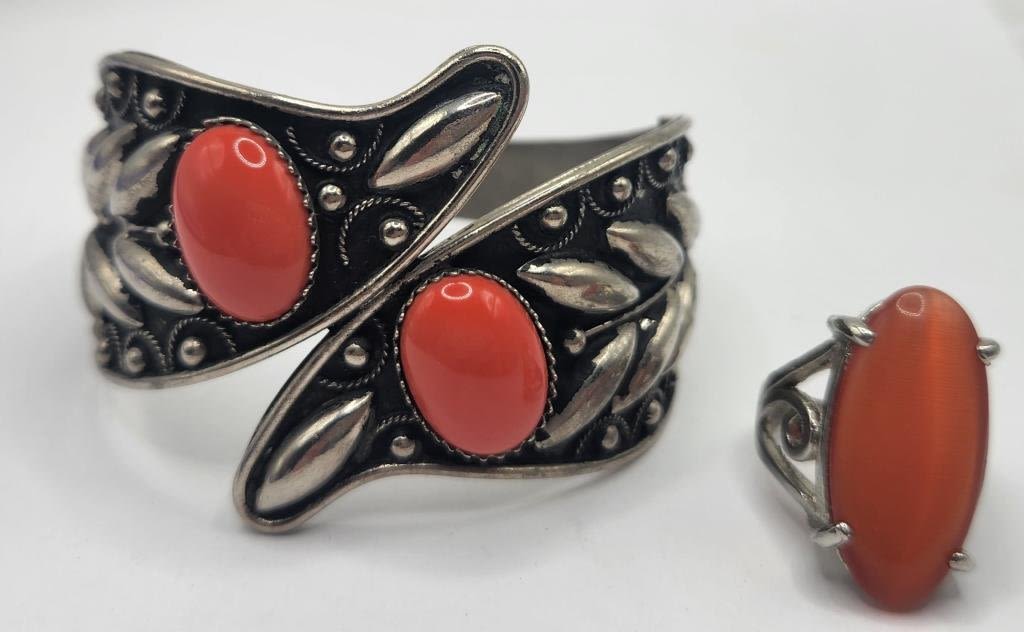 CORAL LUCITE ACCENTS PLUS BONUS RING SIZE 9