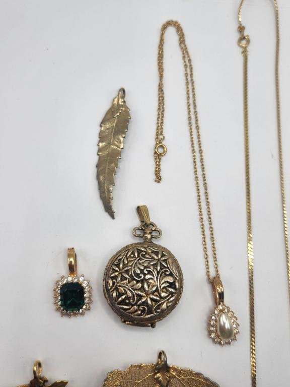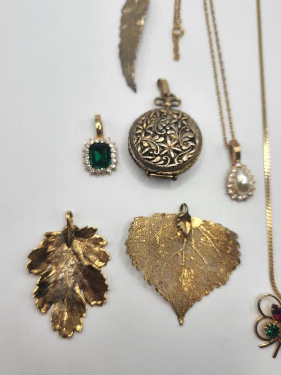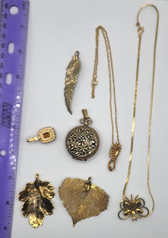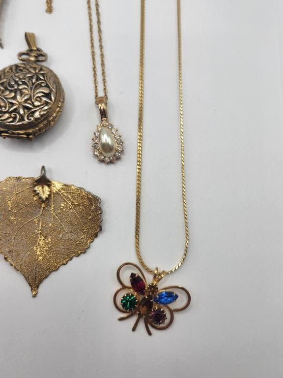 BONUS CHAINS-CAKE PERFUME LOCKET-LEAVES-(2)ROMAN WITH RHINESTONES-BUTTERFLY WITH RHINESTONES