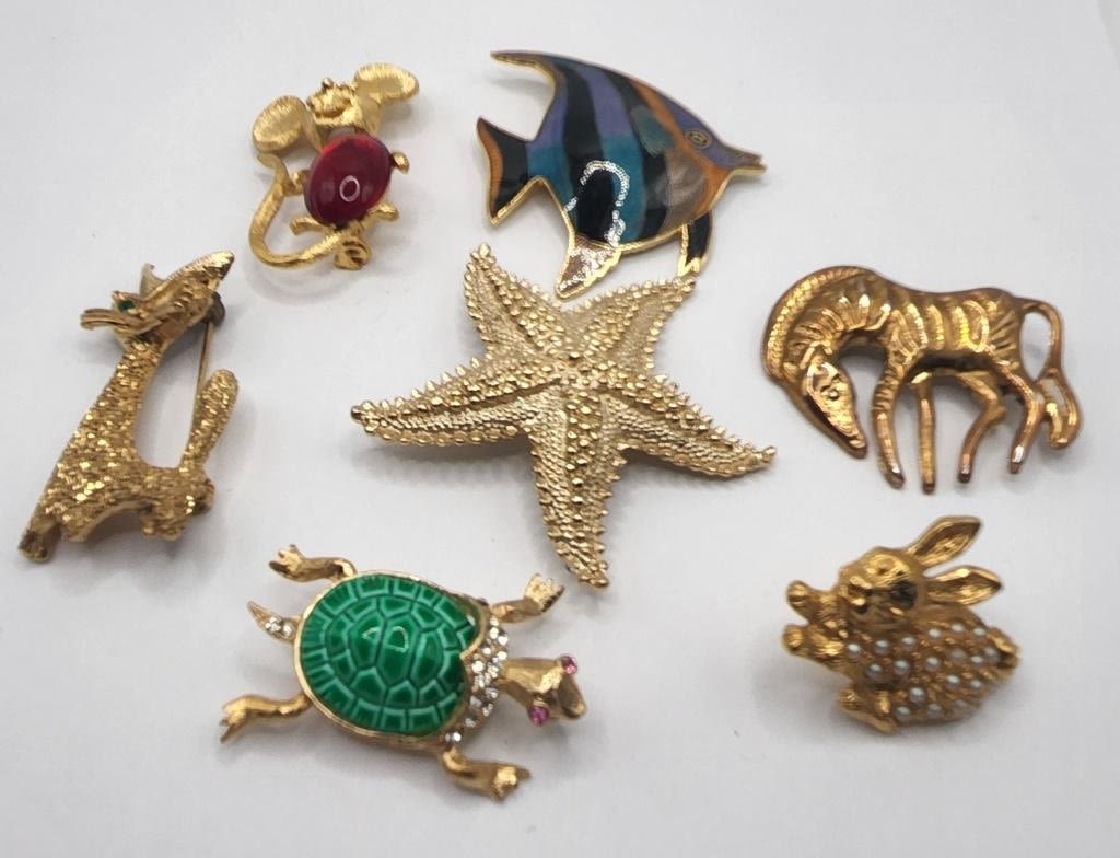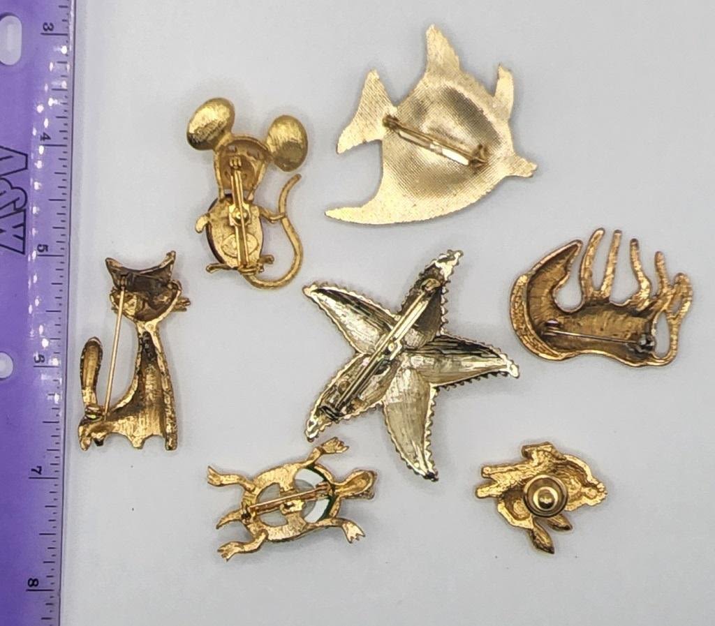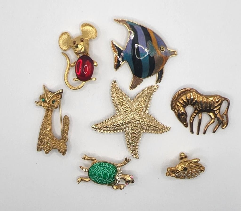 STARFISH-RABBIT-TURTLE-CAT-FISH-MOUSE-ZEBRA-E NAMEL-LUCITE-RHINESTONES