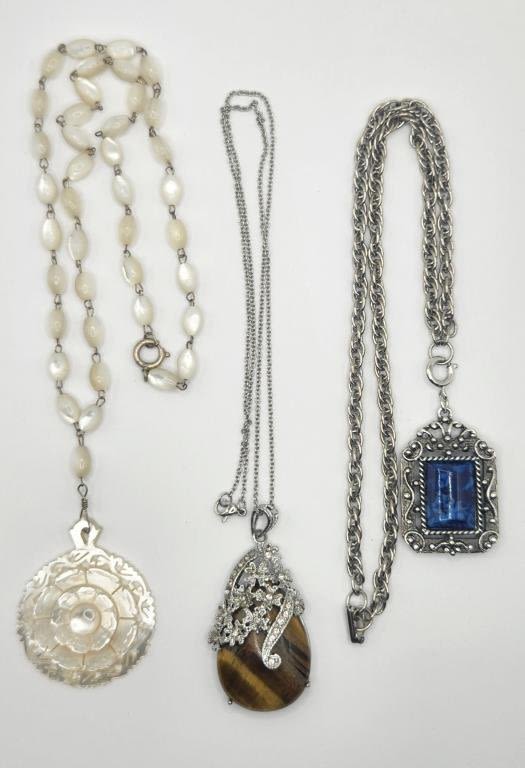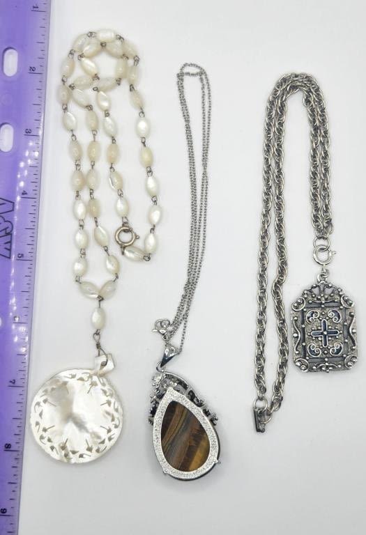 PEARL PENDANT (1)TIGER EYE PENDANT WITH RHINESTONES (1)SQUARE WITH NAVY MARBLE LUCITE