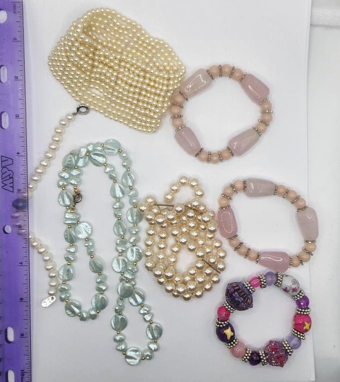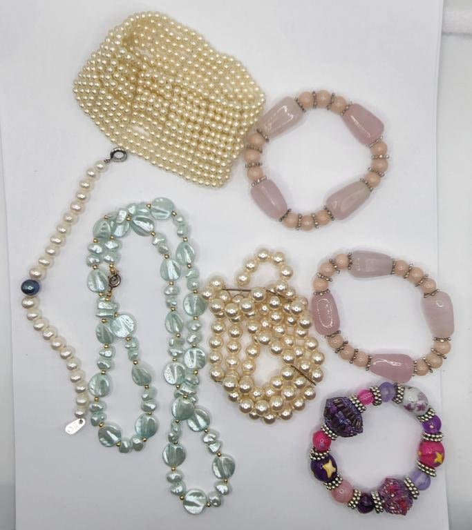 (6)BRACELETS-FAUX PEARLS-LUCITE