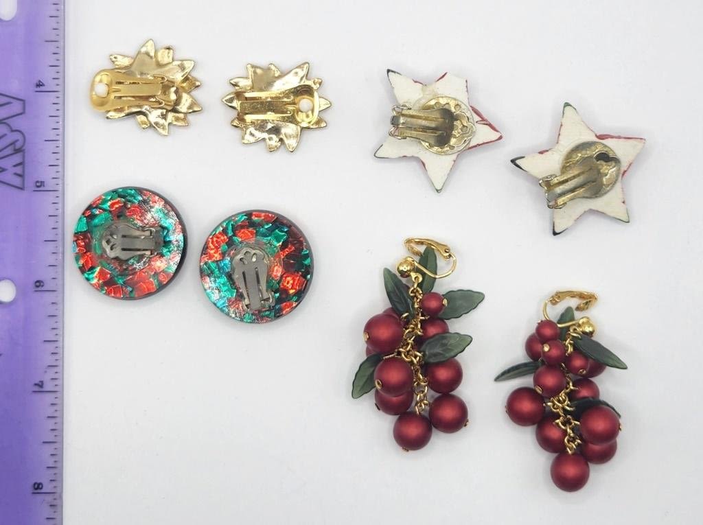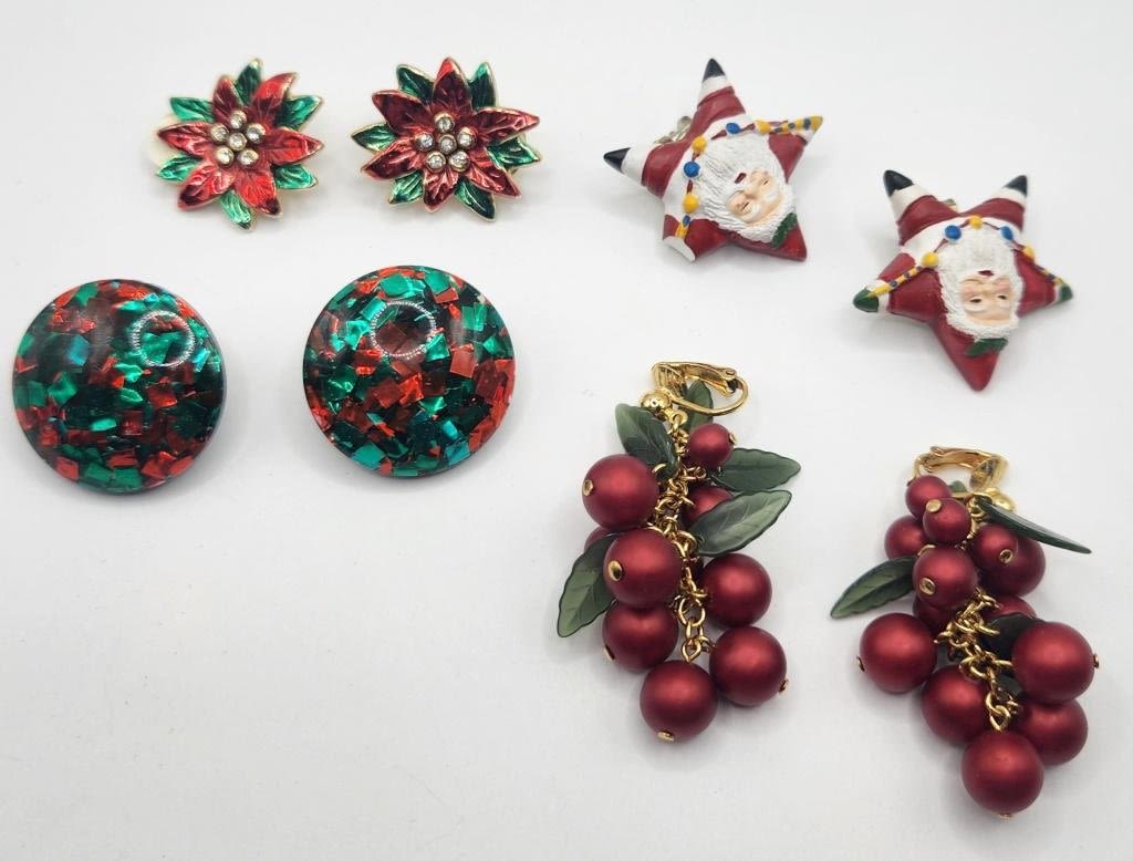 4-PAIRS OF VTG CHRISTMAS CLIP ON EARRINGS