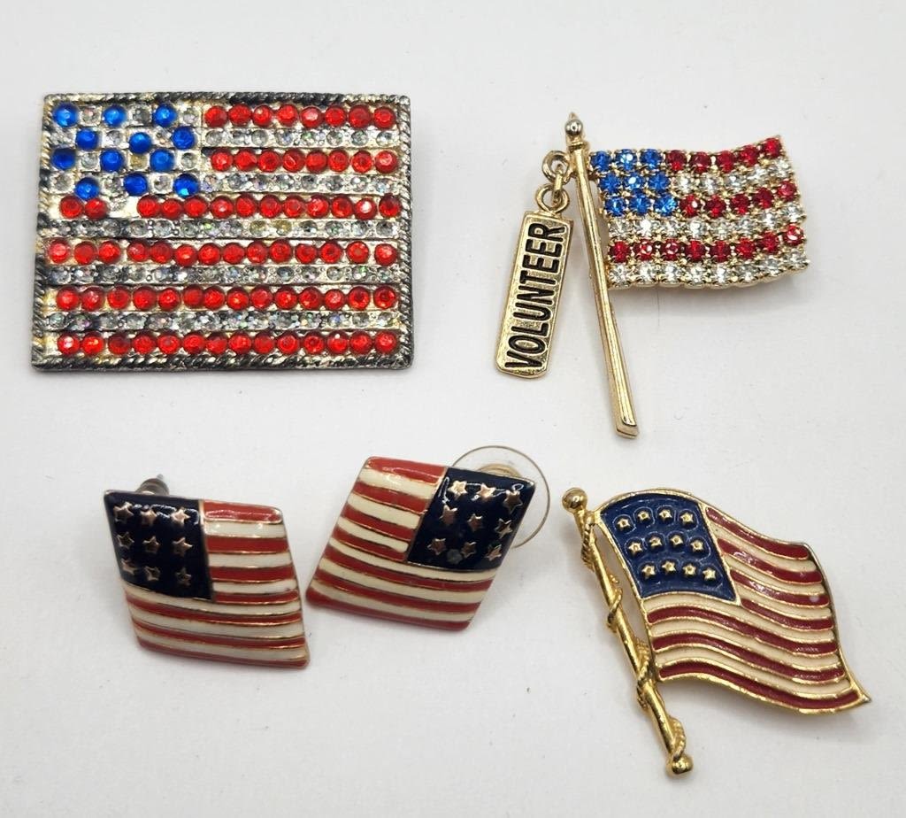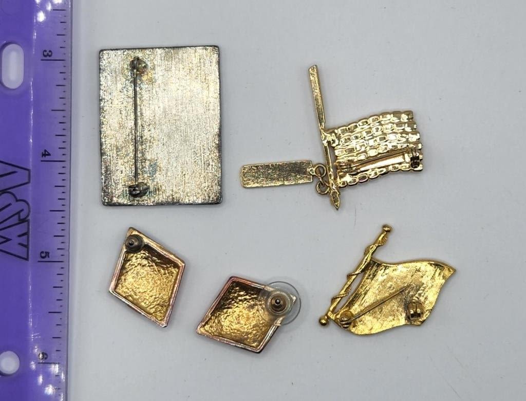 (1)BROOCHES/PINS & (1)PAIR OF PIERCED EARRINGS-ENAMEL AND RHINESTONES