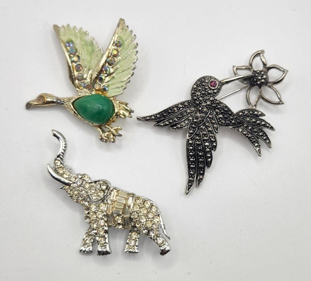 HUMMINGBIRD-RHINESTONES-LUCITE-MARCASITE