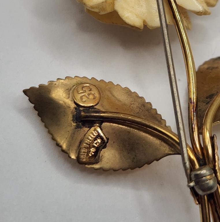 ROSE-DENTON BONE-CARVE BONE-SOME WITH LUCITE AND RHINESTONE ACCENTS