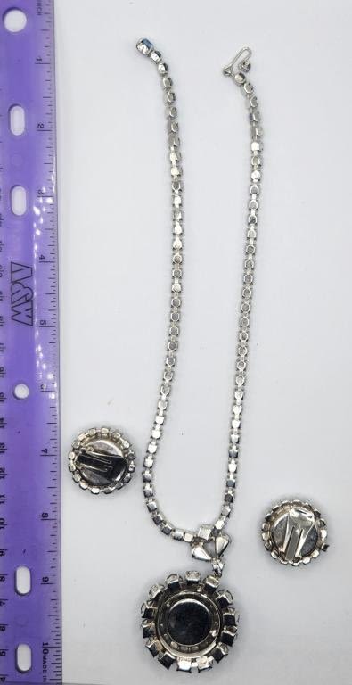 RHINESTONE NECKLACE WITH MATCHING PAIR OF CLIP ON EARRINGS