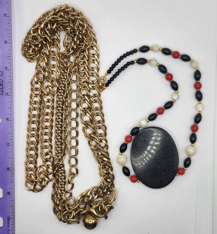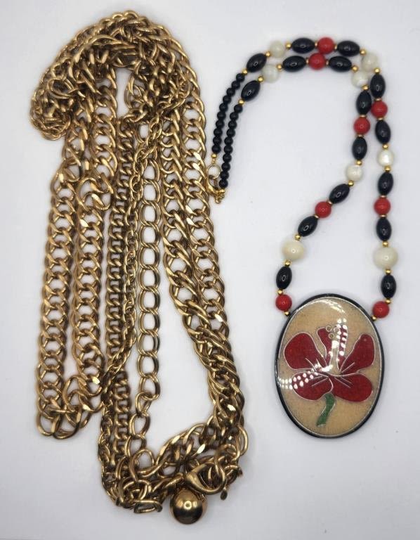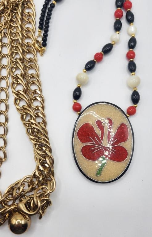 WITH POSSIBLE SAND RESIN ROSE PENDANT PLUS BONUS MULTI LAYERED GOLD TONED LINKED NECKALCE