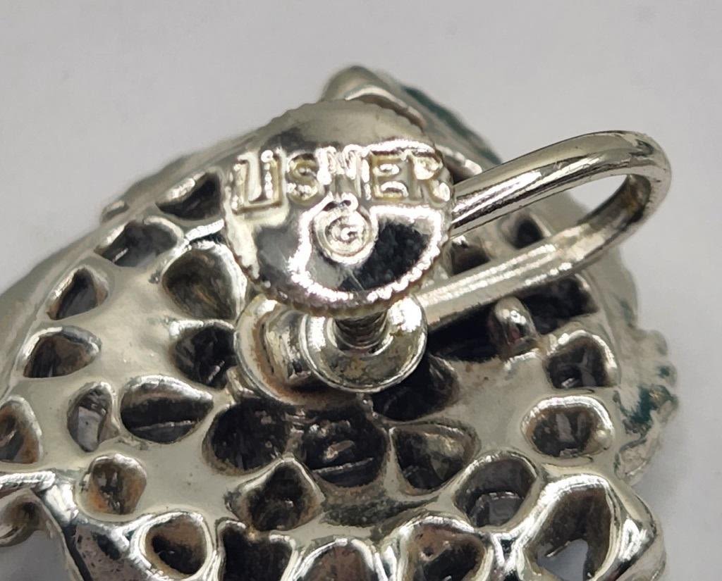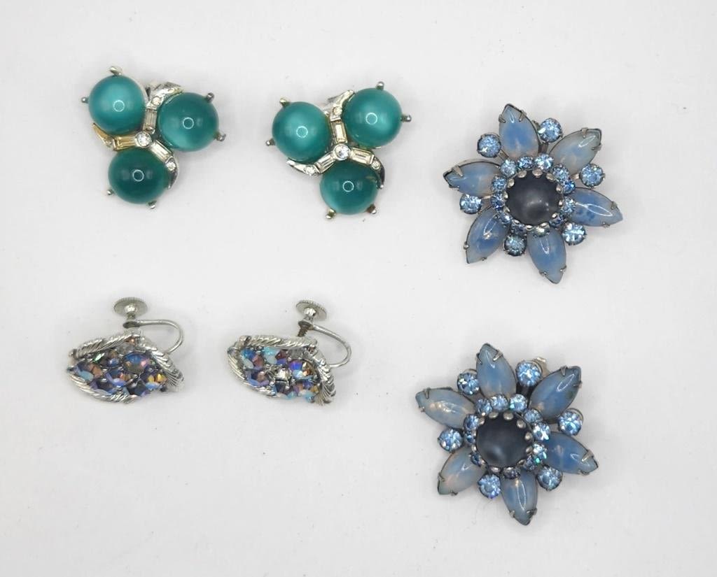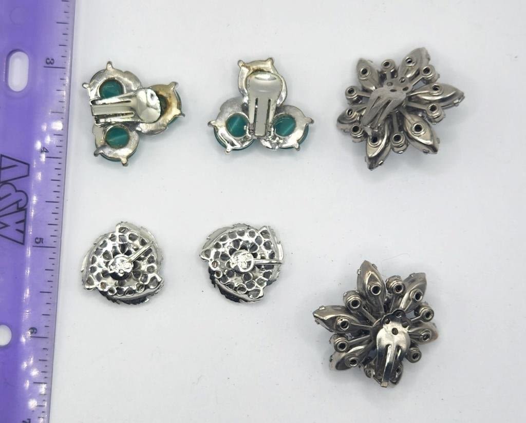 (1)LISNER WITH RHINESTONES (1)FLOWER WITH BABY BLUE RHINESTONES AND LUCITE (1)WITH GREEN LUCITE