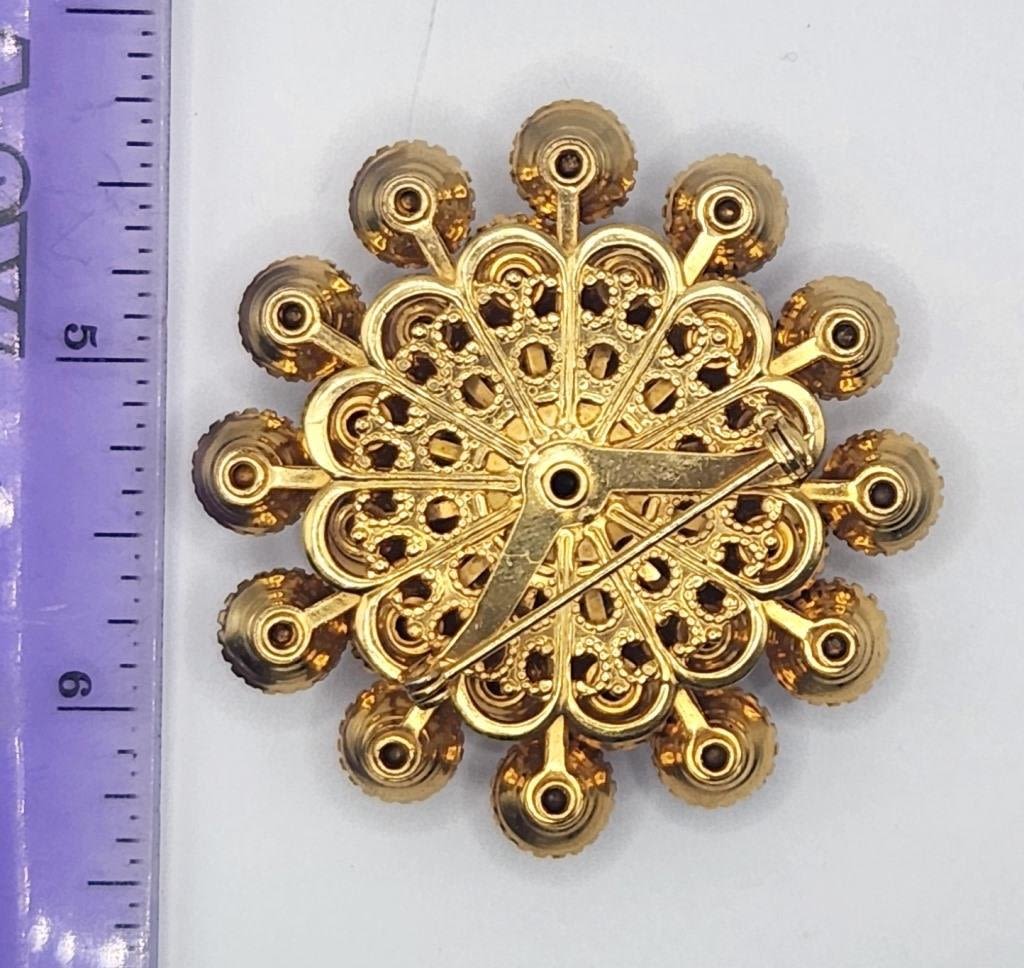 VINTAGE GOLD TONED RHINESTONE BROOCH