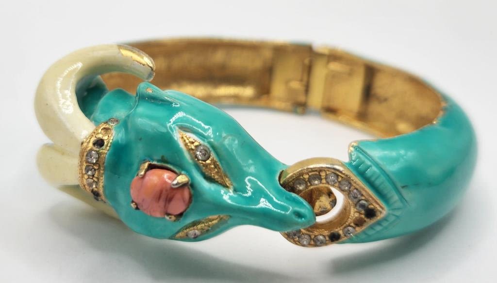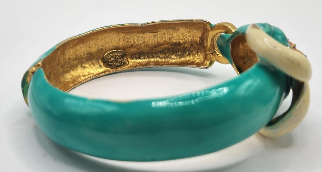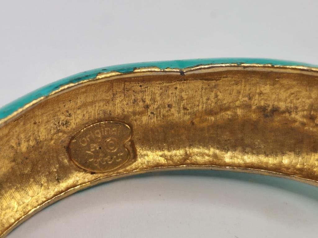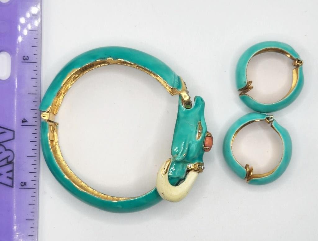 COLRED PAIR OF PIERCED HOOPED EARRINGS-TEAL ENAMEL-RHINESTONE ACCENTS (2)MISSING