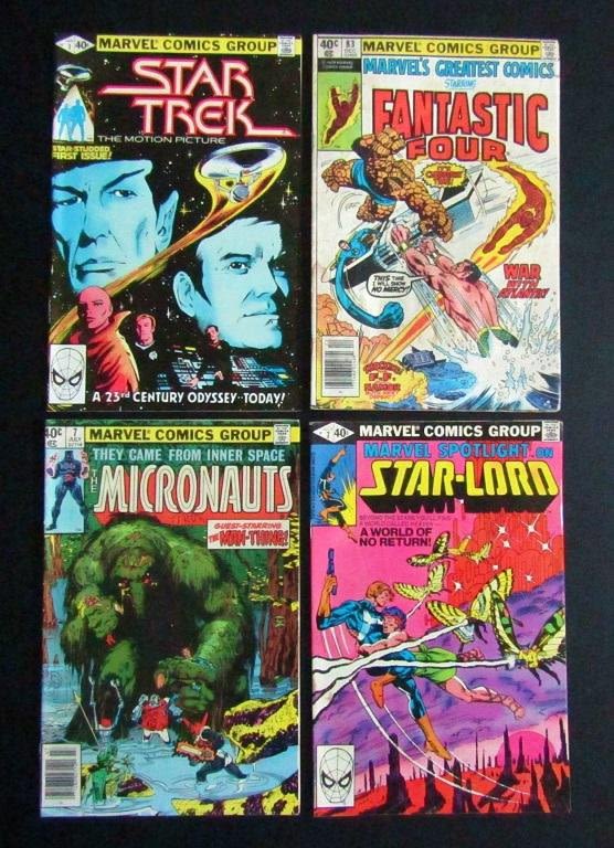 #1 Star Trek, #83 Marvel’s greatest comics Fantastic Four, #7 The Micronauts, Marvel Spotlight Star-Lord #7