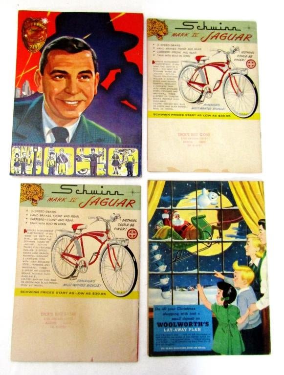 CHRISTMAS STORY BOOK 1953; (2) SCHWINN BIKE THRILLS 1950’s; JACK WEBB’s SAFETY SQUAD COLORING BOOK 1956 UNCOLORED VERY NICE CONDITION – DRAGNET COLORING BOOK!