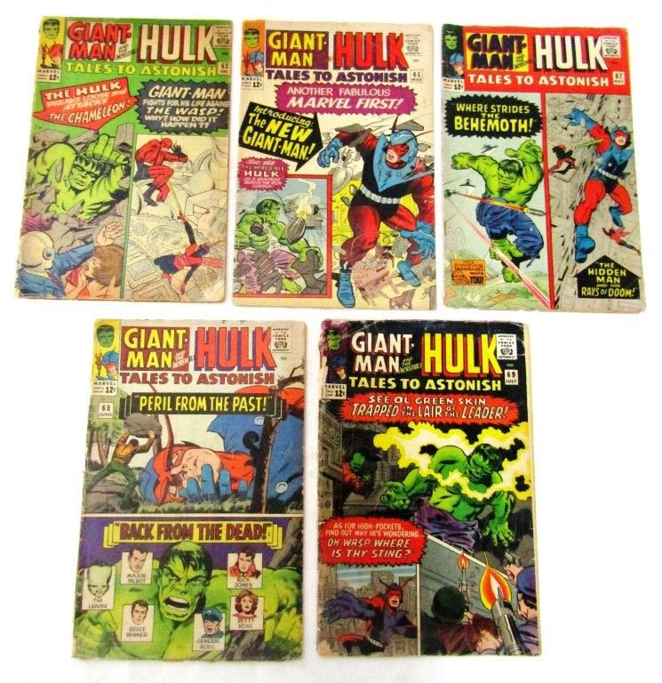 GIANT-MAN AND THE INCREDIBLE HULK 1964 #22, 1965 #65, 67, 68 & 69 – ALL HAVE EXTRA STAPLES ADDED – VG/GOOD