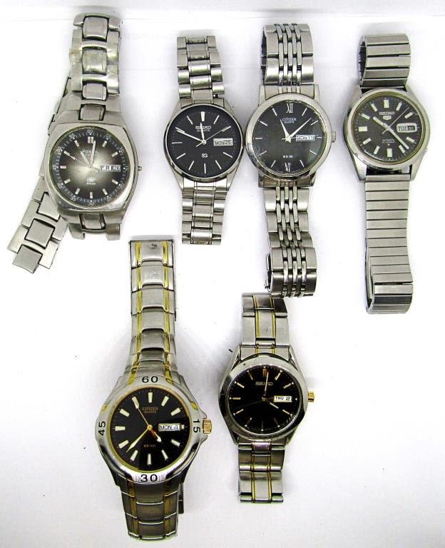 (3) SEIKO, (2) CITIZEN, (1) FOSSIL (band needs repaired) – OVER ALL NICE CONDITION – UNTESTED AS TO WORKING CONDITION