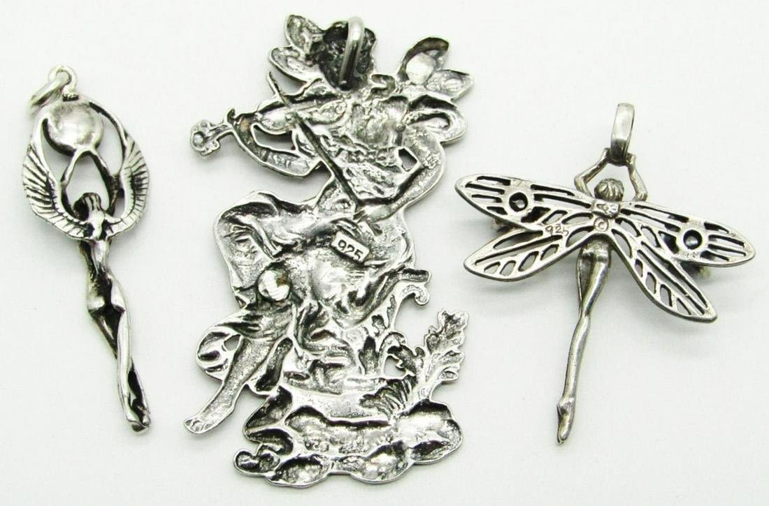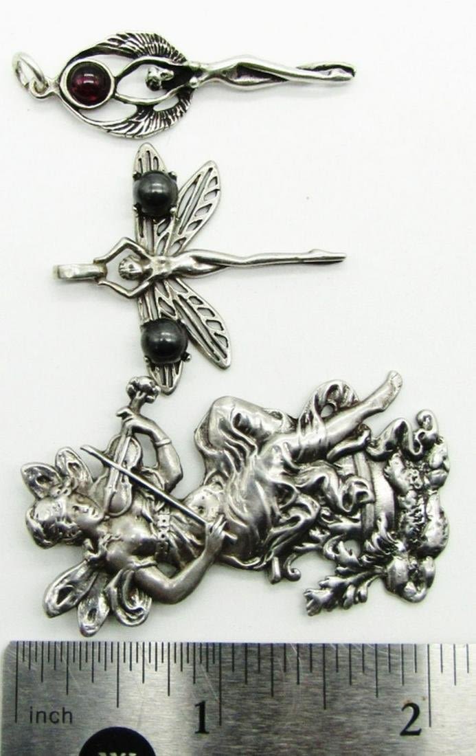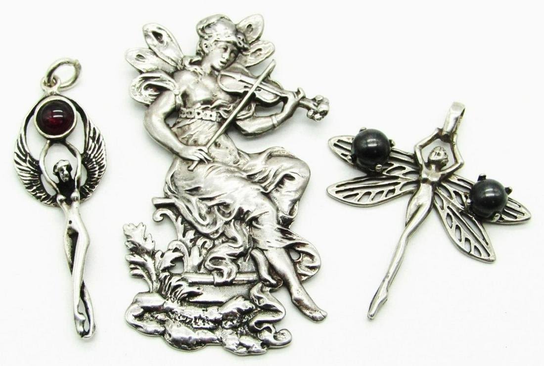 Art Nouveau Fairy Maiden Musician Playing Violin – 2 Inches, 2 Fairy Pendants – Measures 1 1/2 Inches; TOTAL 11 dwt