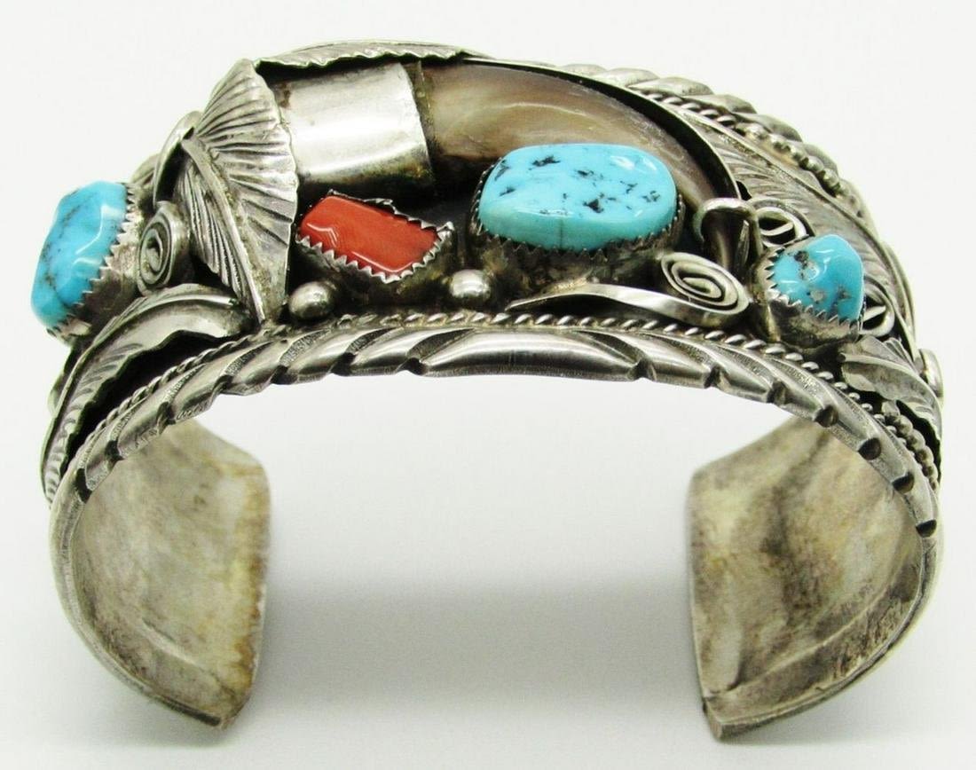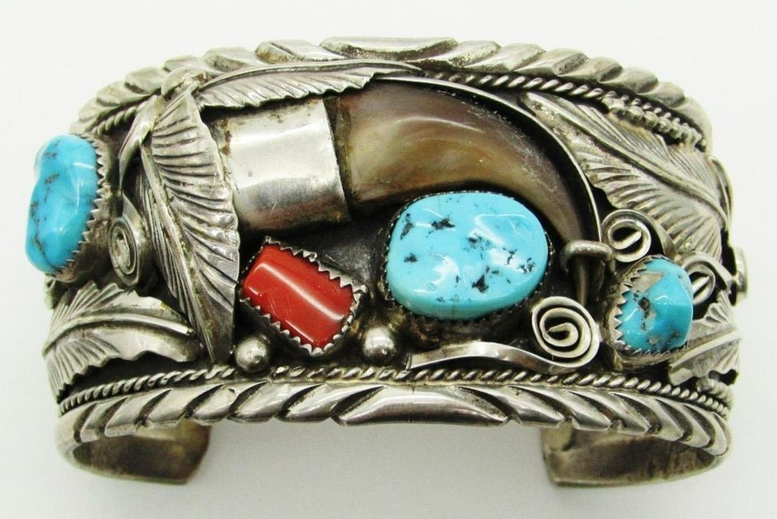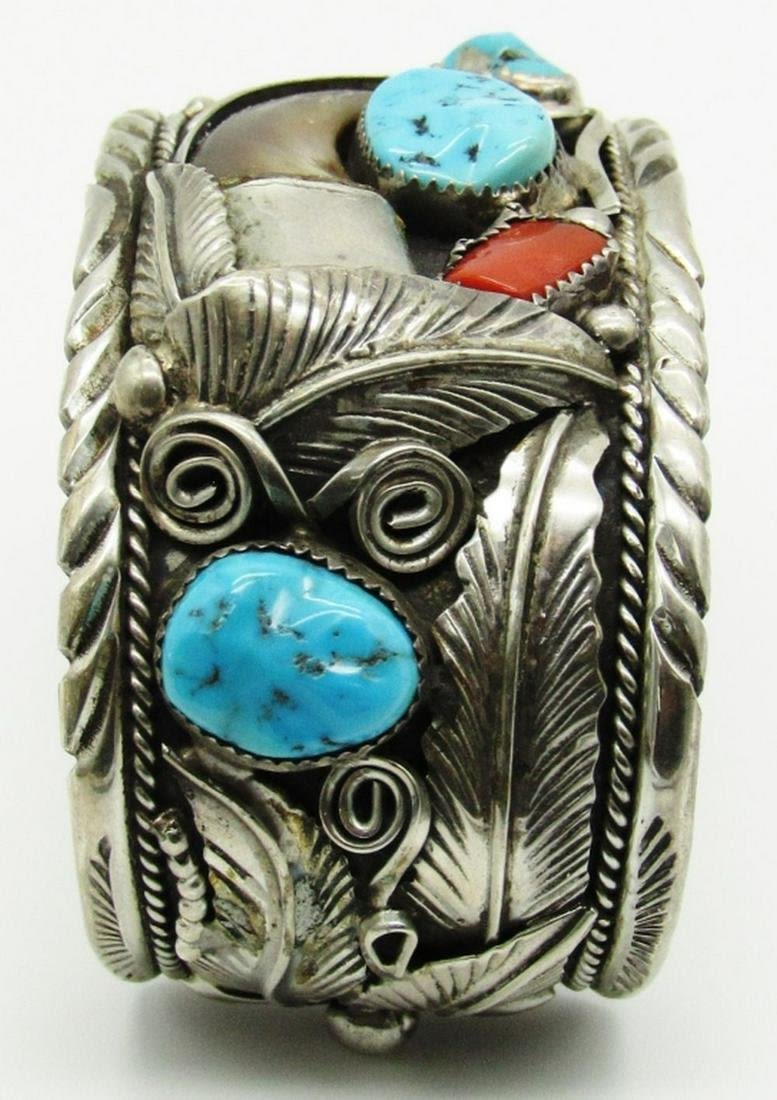 TURQUOISE-RED CORAL-AND CLAW-LEAF DESIGN-MEASURES 8.5 INCHES WITH GAP-TOTAL 52 DWT