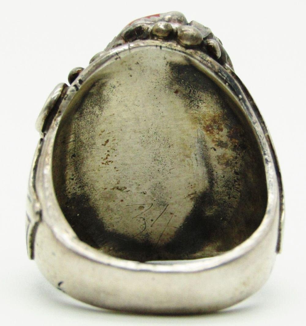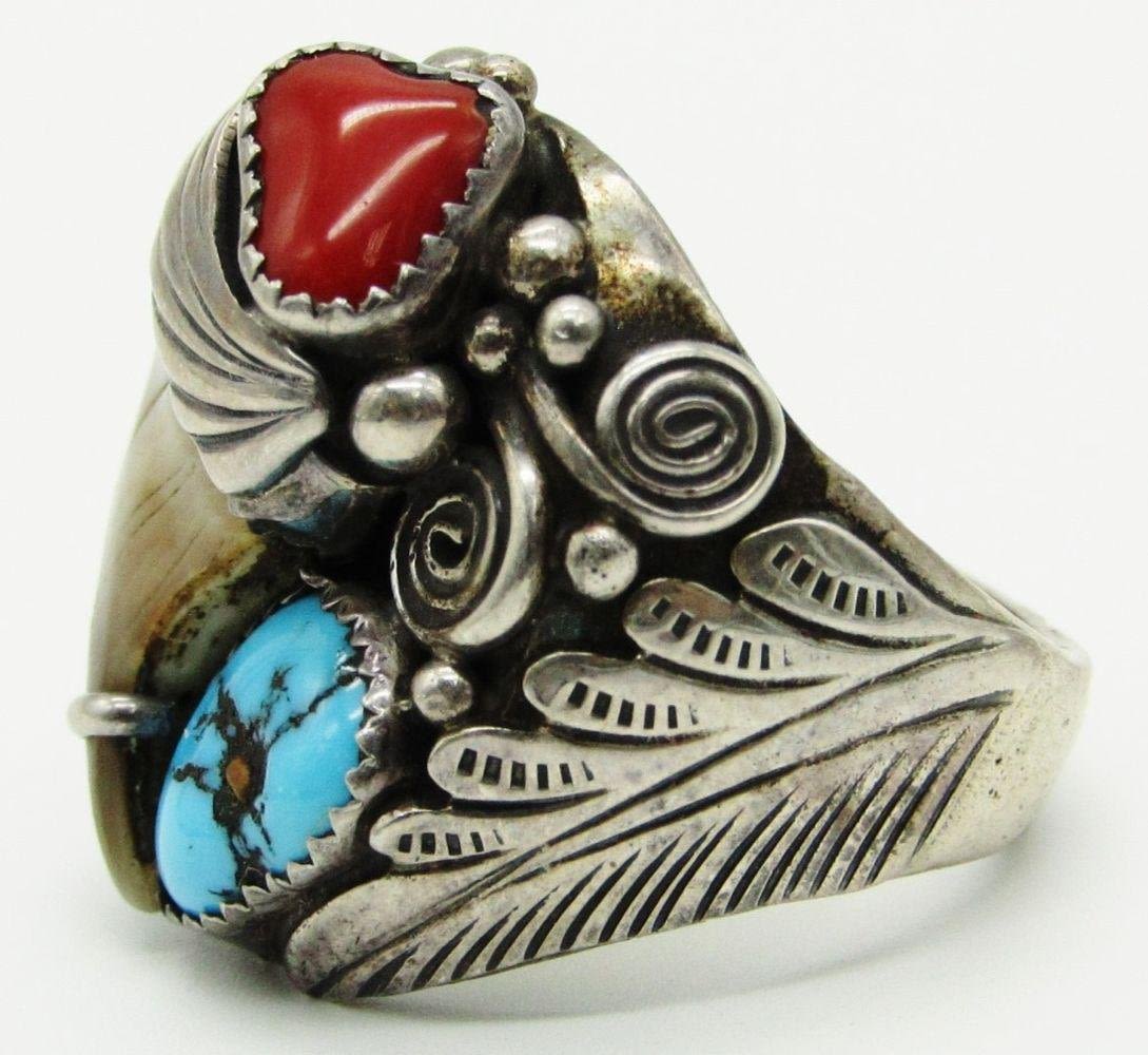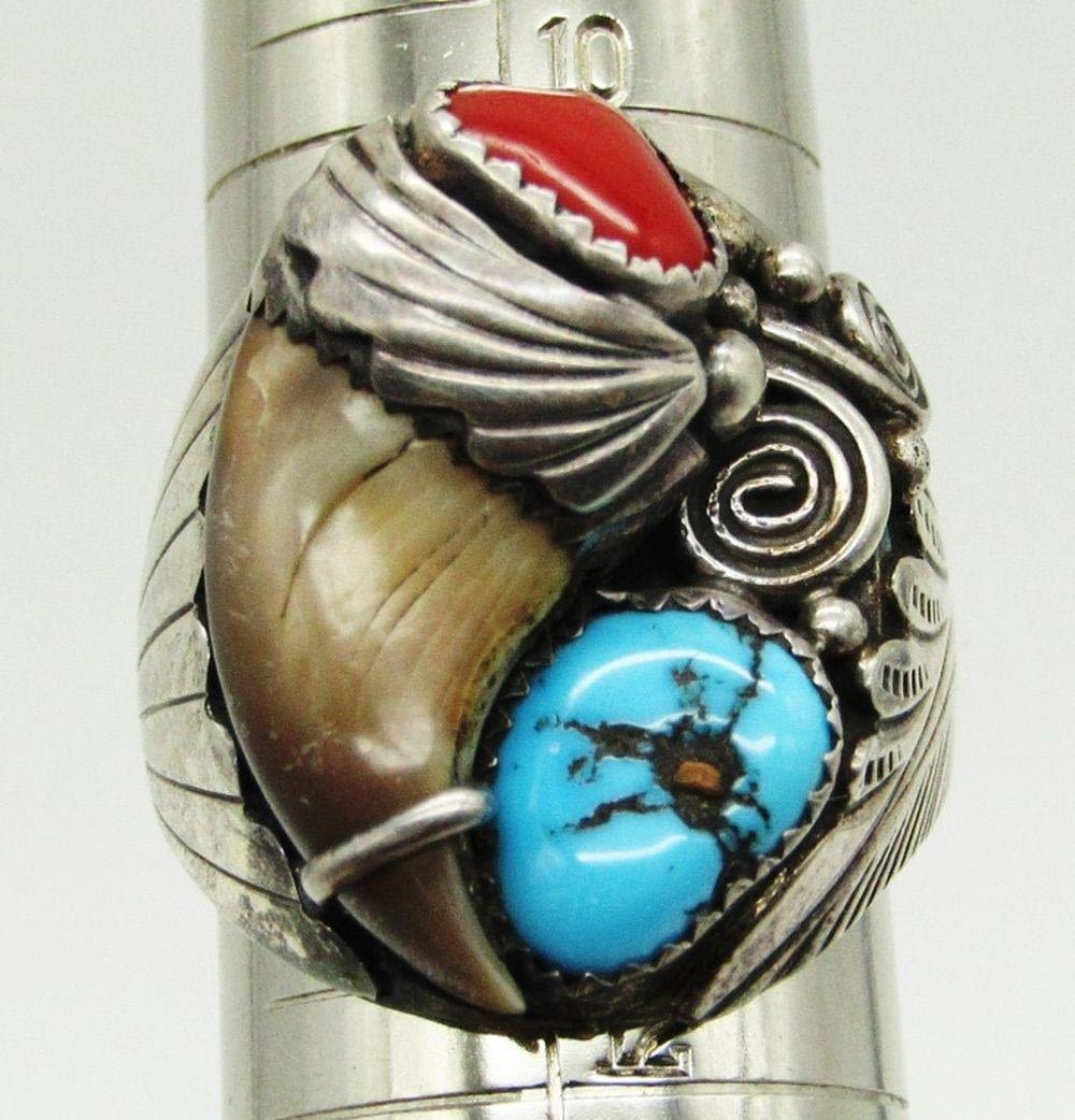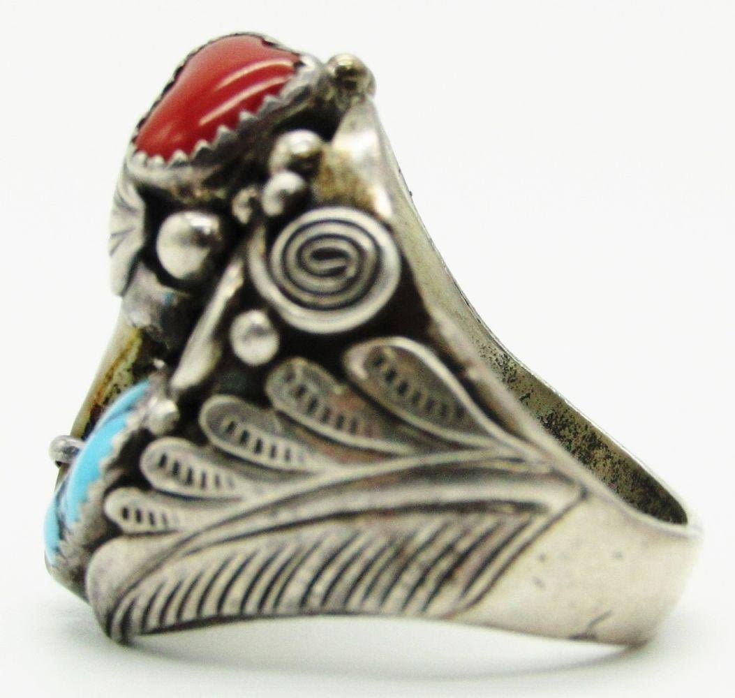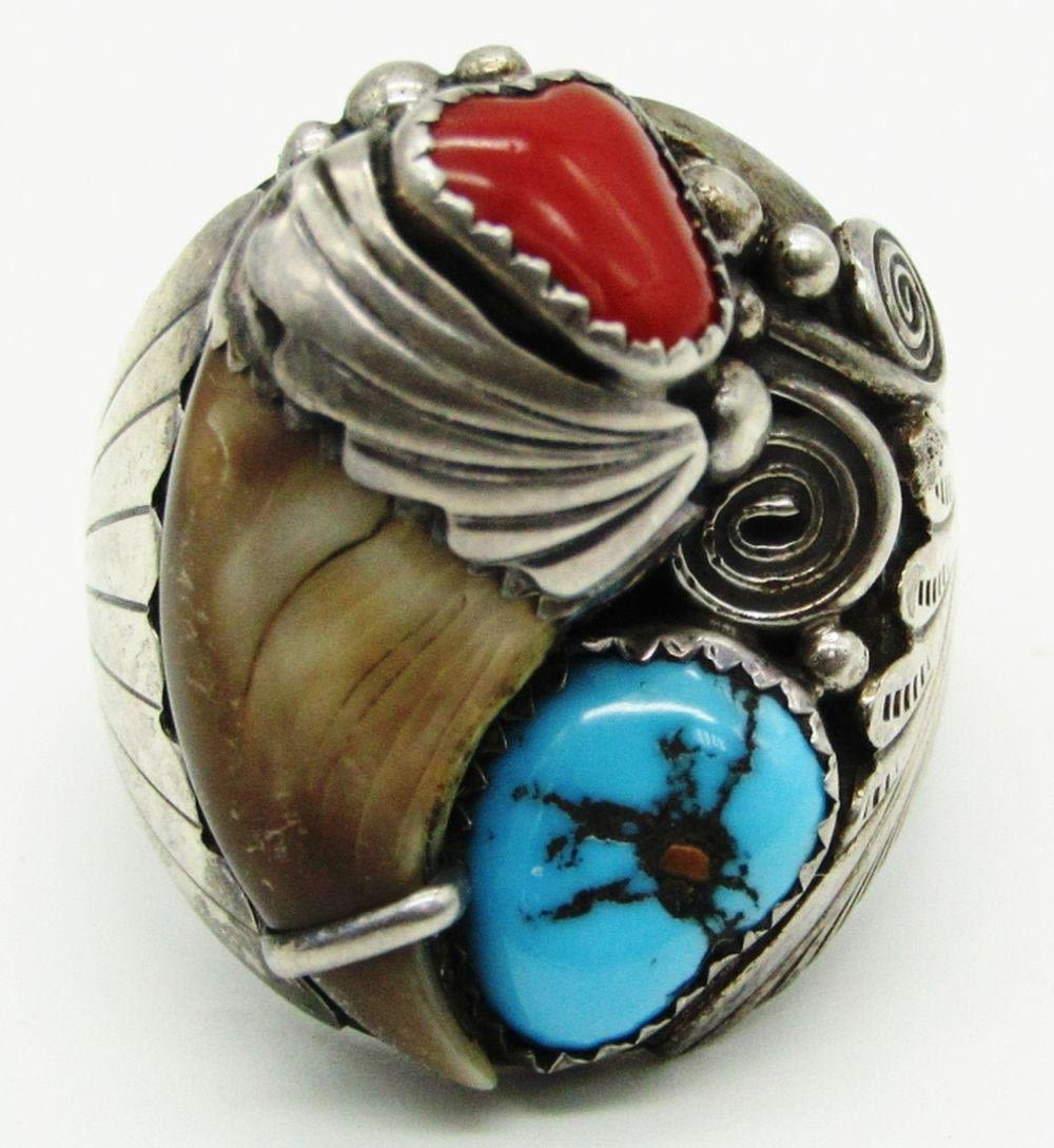 TURQUOISE-RED CORAL & CLAW-RING SIZE 11-TOTAL 14 DWT