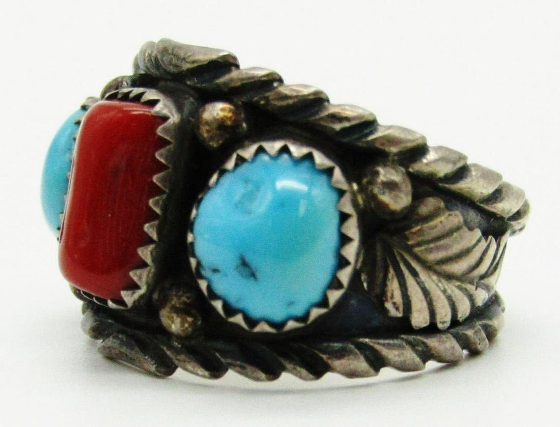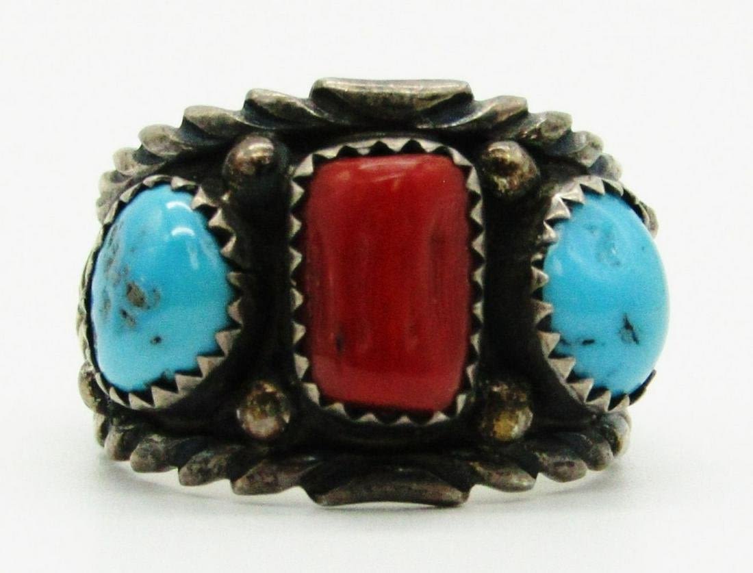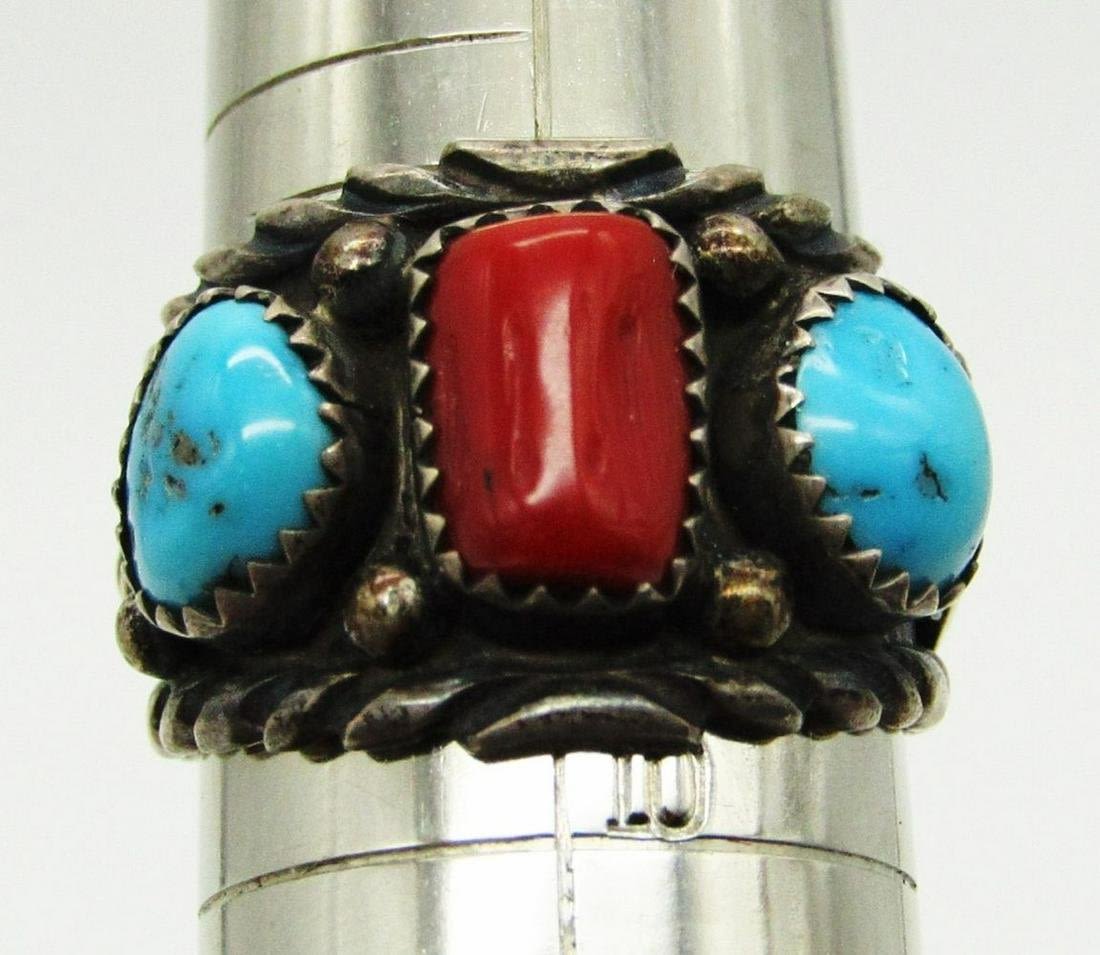 CORAL AND TURQUOISE STONES-RING SIZE 9.5-TOTAL 4 DWT