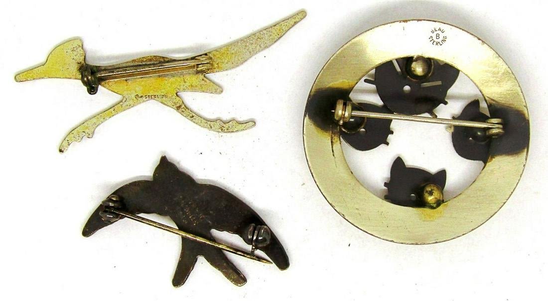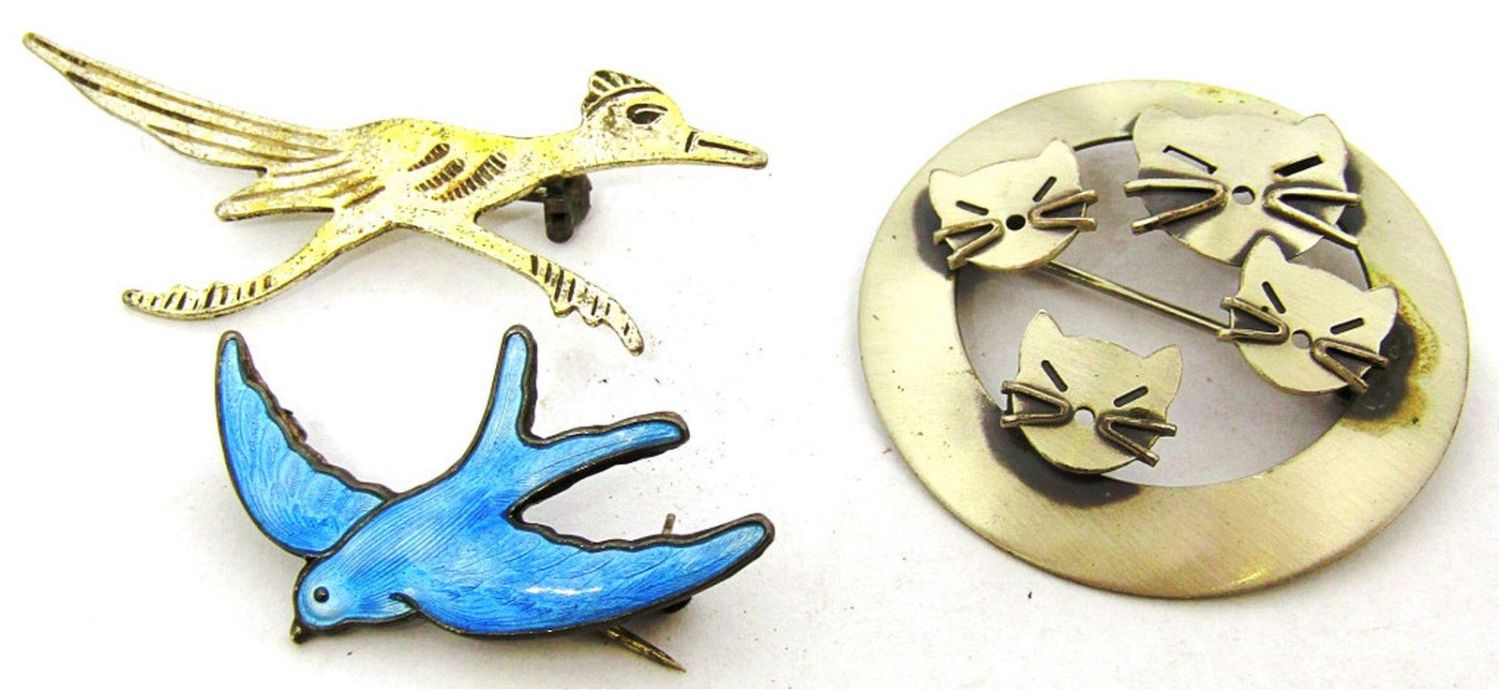 BELL CATS-MEKA DENMARK STERLING BIRD WITH BABY BLUE ENAMEL-TOTAL 9 DWT