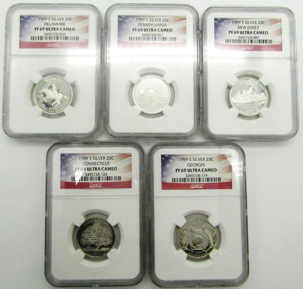 STATE QUARTER 5 COIN SILVER SET – ALL NGC PF 69 ULTRA CAMEO