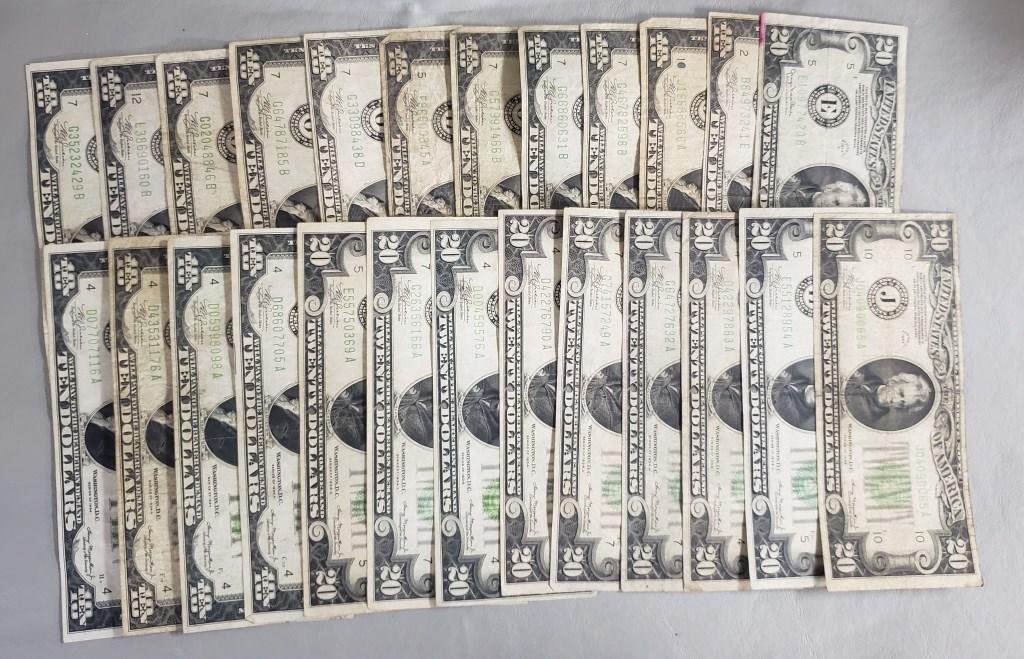 (10) $20, (15) $10 – CIRC LOT – $350 FACE VALUE