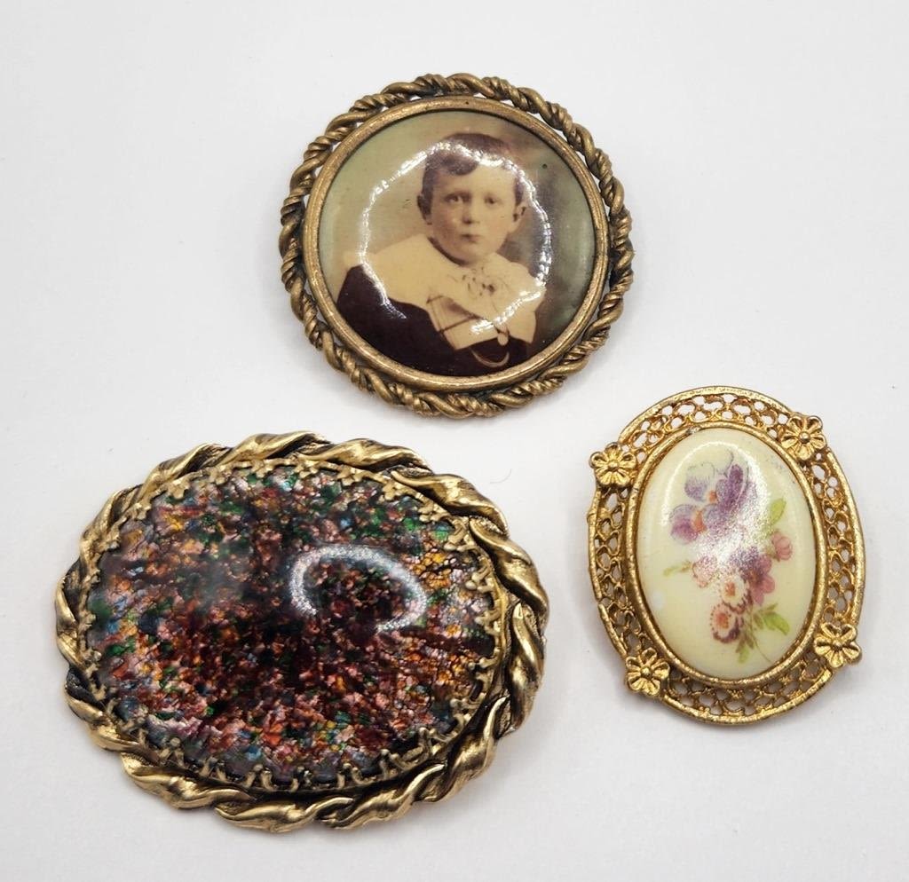 PORTRAIT-FLOWER ENAMEL DESIGN-METALLIC LUCITE CENTER