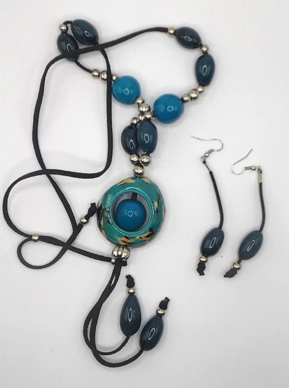 BEADS WITH MATCHING PAIR OF PIERCED DANGLY EARRINGS