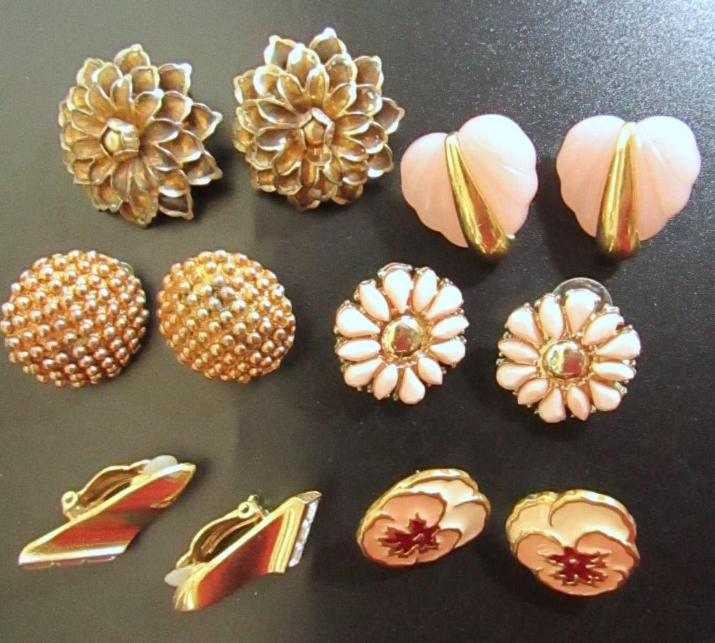 EARRINGS: CORO-FLOWERS-LUCITE-ENAMEL