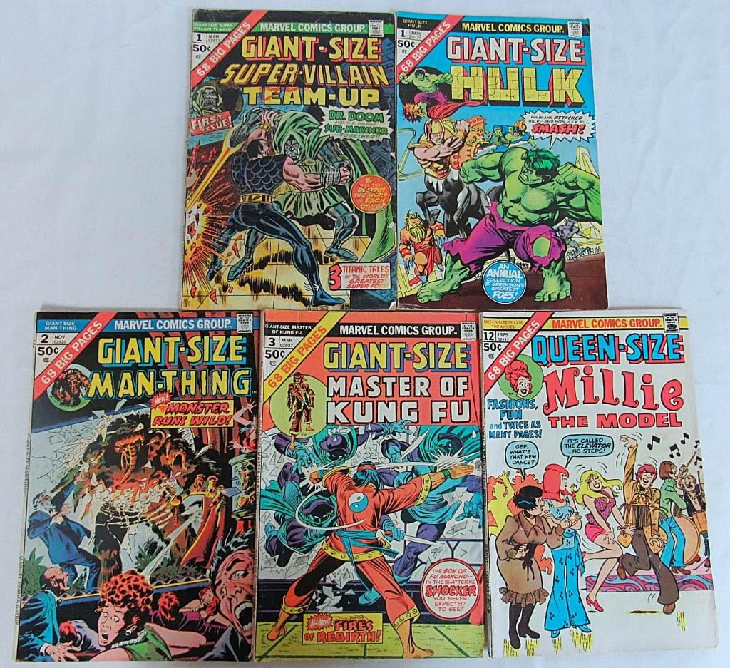 #1 SUPER-VILLAIN TEAM UP, #1 HULK, #2 MAN-THING, #3 MASTER OF KUNG FU, #12 QUEEN SIZE MILLIE THE MODEL !