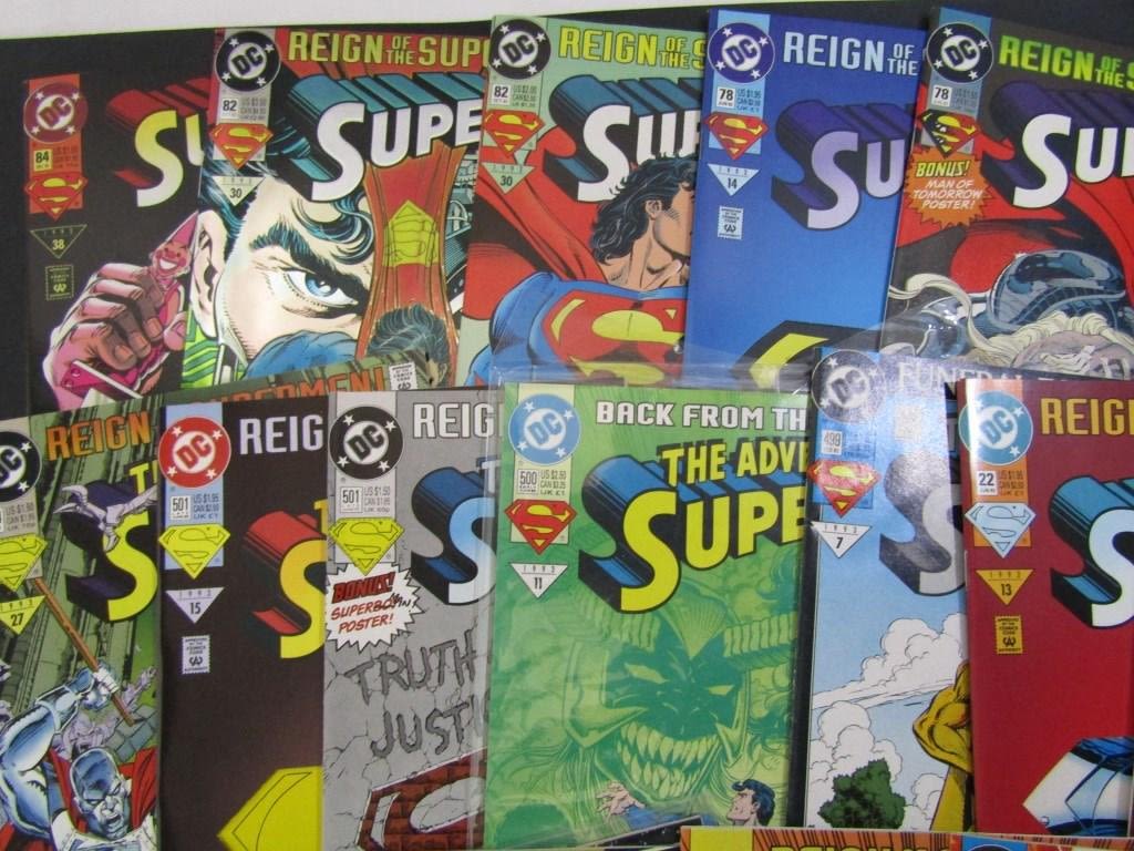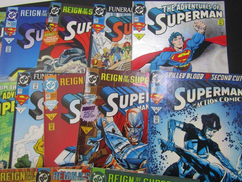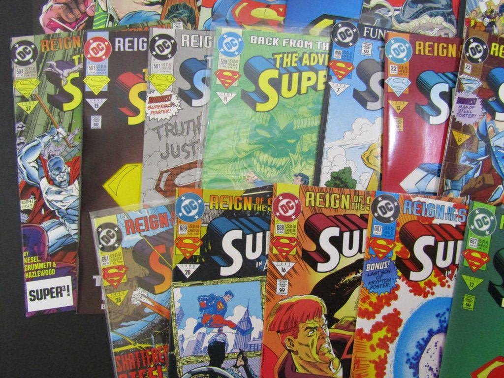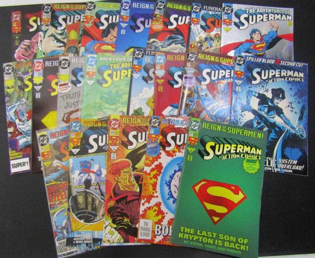 Superman #’s 76, 78(x2), 82(x2), 84; The Adventures of Superman #’s 499, 500, 501 (x2), 504, 505; Superman The Man of Steel #22(x2); Superman In Action Comics #’s 687 (x2), 688, 689, 691, 694; Includes Few Double