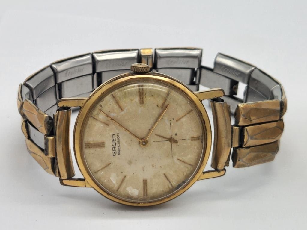 (1)HELBROSE CALENDAR SELF WINDING (1)GRUEN PRECISION-BOTH WATCHES UNTESTED/PARTS/REPAIR