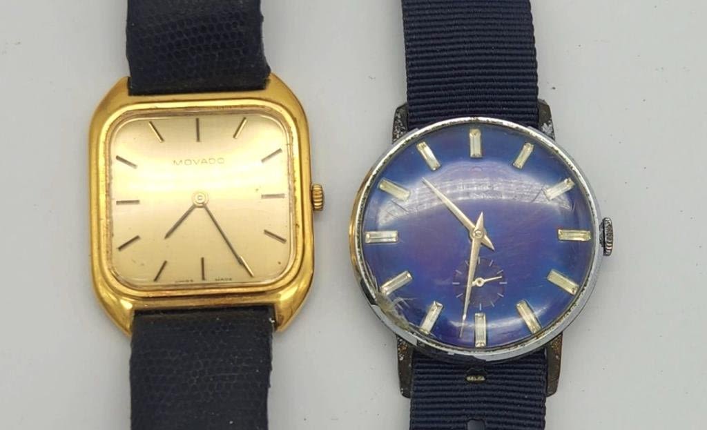 (1)HELBROS ART DECO STYLE WITH BLUE DIAL & (1)MOVADO-BOTH WATCHES UNTESTED/PARTS/REPAIR