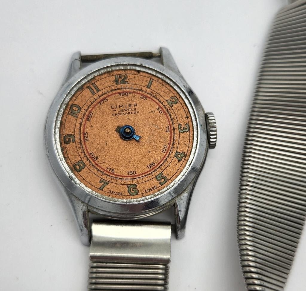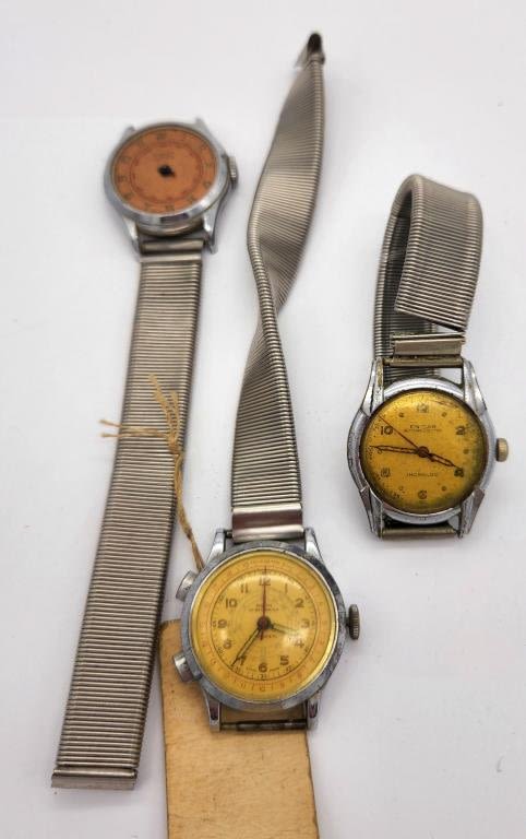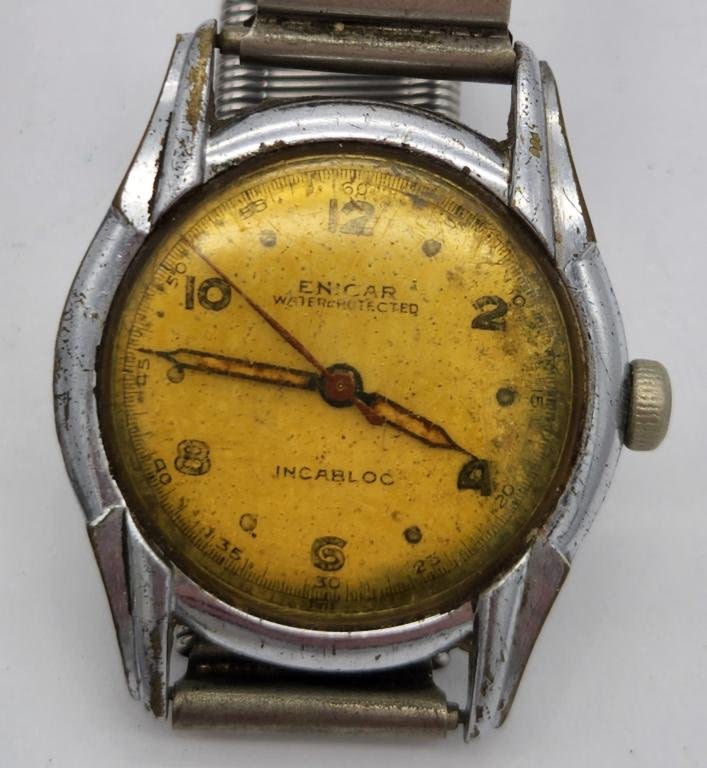 WITH SPRING BANDS-AGON-CIMIER 7 JEWEL-ENICAR-WATCHES ARE UNTESTED/PARTS/REPAIR