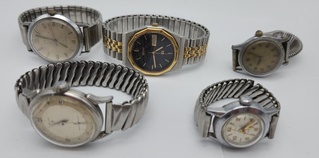SEIKO DAY DATE-CHASE-TIMEX SELF WIND-ALL WATCHES UNTESTED