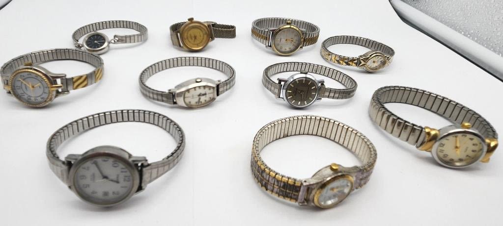 STRETCHY BANDS-SARAH COVENTRY-TIMEX-ARMITRON-TIMEX ELECTRA-SEKIKO-MONET-WALTHAM-CARRIAGE & MORE! ALL WATCHES UNTESTED