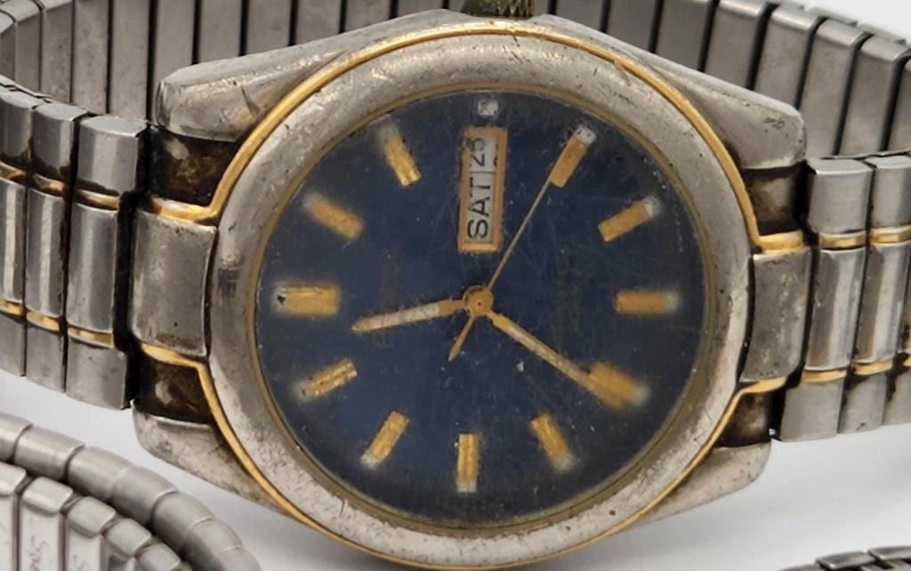 ARMITRON DAY DATE WITH BLUE DIAL-DETAILS QUARTZ-SPIDEL QUARTZ WR-WATCH IT QUARTZ-TIMEX-ALL WATCHES UNTESTED
