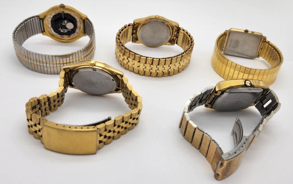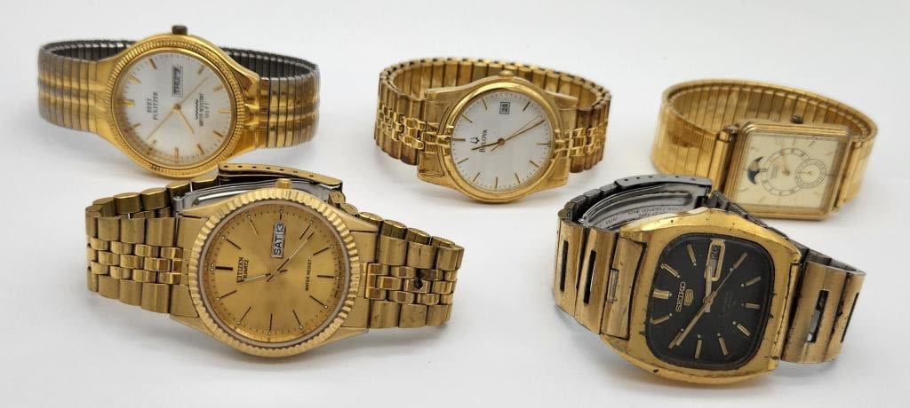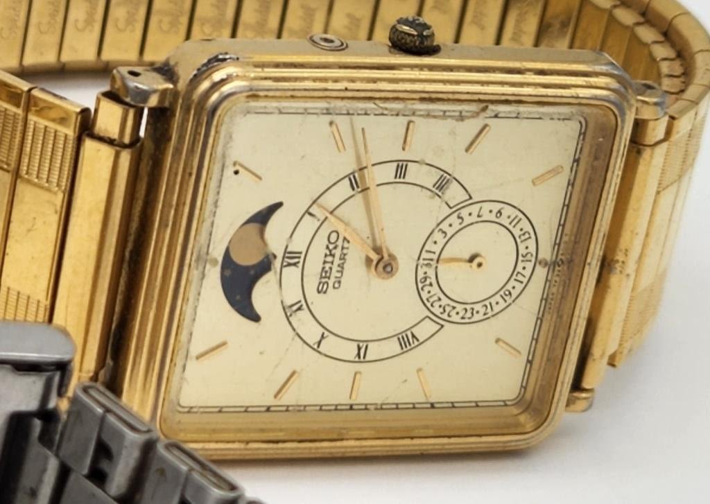 SEIKO QUARTZ MOON PHASE-SEIKO 21 JEWELS AUTOMATIC DAY DATE RUNNING-BERT PULITZER 100 FT WR DAY DATE-BULOVA CALENDAR-CITIZEN QUARTZ WR DAY DATE-ALL WATCHES UNTESTED