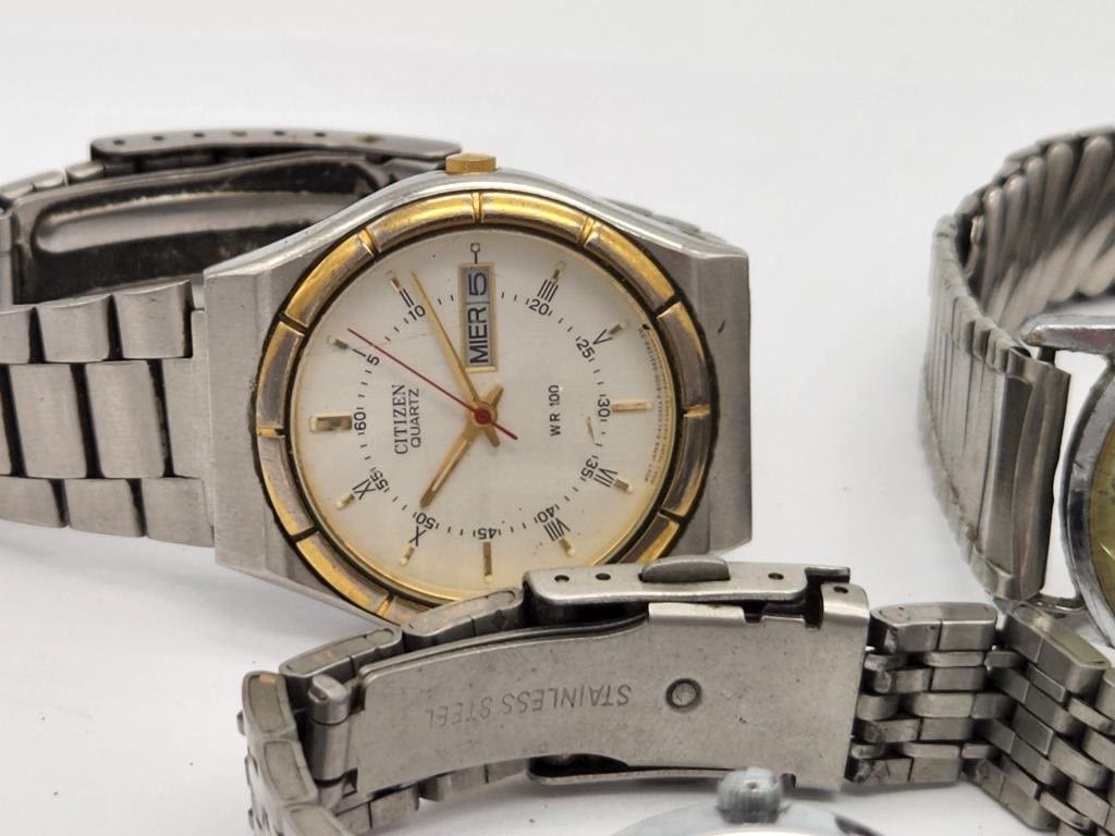 CITIZEN QUARTZ WR 100 DAY DATE-TIMEX-ACCUTRON-MILAN DIAMOND QUARTZ-LONGBO-ALL WATCHES UNTESTED