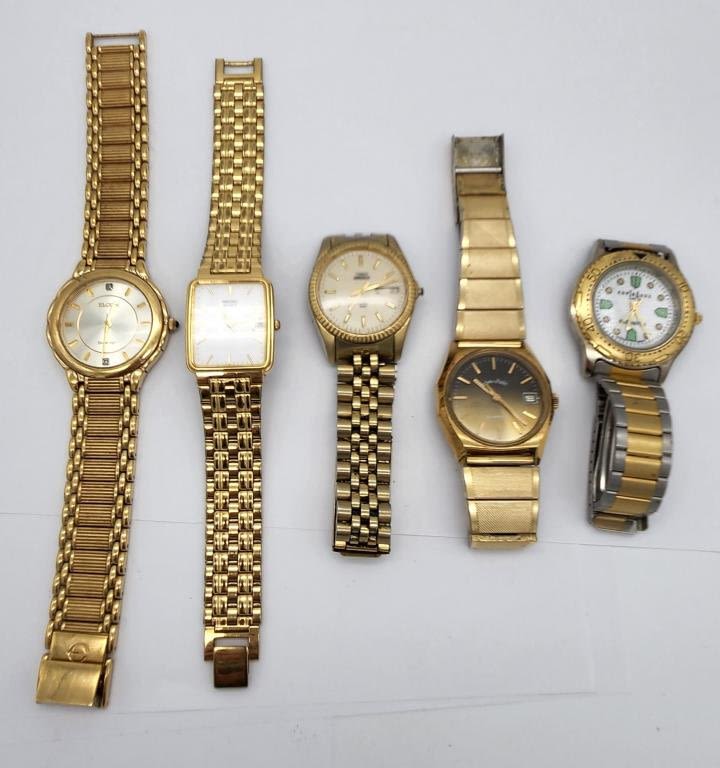 SEIKO QUARTZ CALENDAR-EXPRESS GLOWATCH-ANDRE PAILET CALENDAR-ELGIN DIAMOND-TIMEX INDIGLO QUARTZ DAY DATE-ALL WATCHES UNTESTED