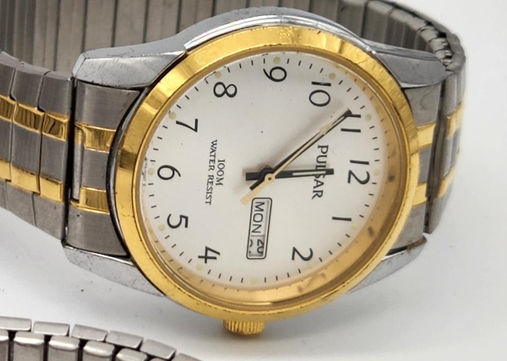 PULSAR DAY DATE-HAMILTON 17 JEWEL-PULSAR 100M WR DAY DATE-TIMEX INDIGLO 50M WR CALENDAR & MORE! ALL WATCHES UNTESTED