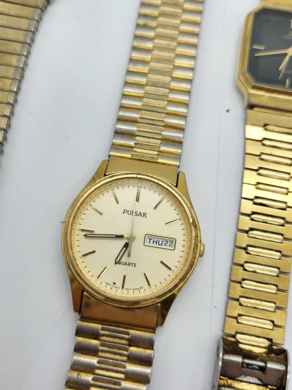 CARAVELLE-PULSAR DAY DATE-BULOVA 23 JEWELS (RUNNING)-ADVANCE DAY DATE-LORUS-ALL WATCHES UNTESTED